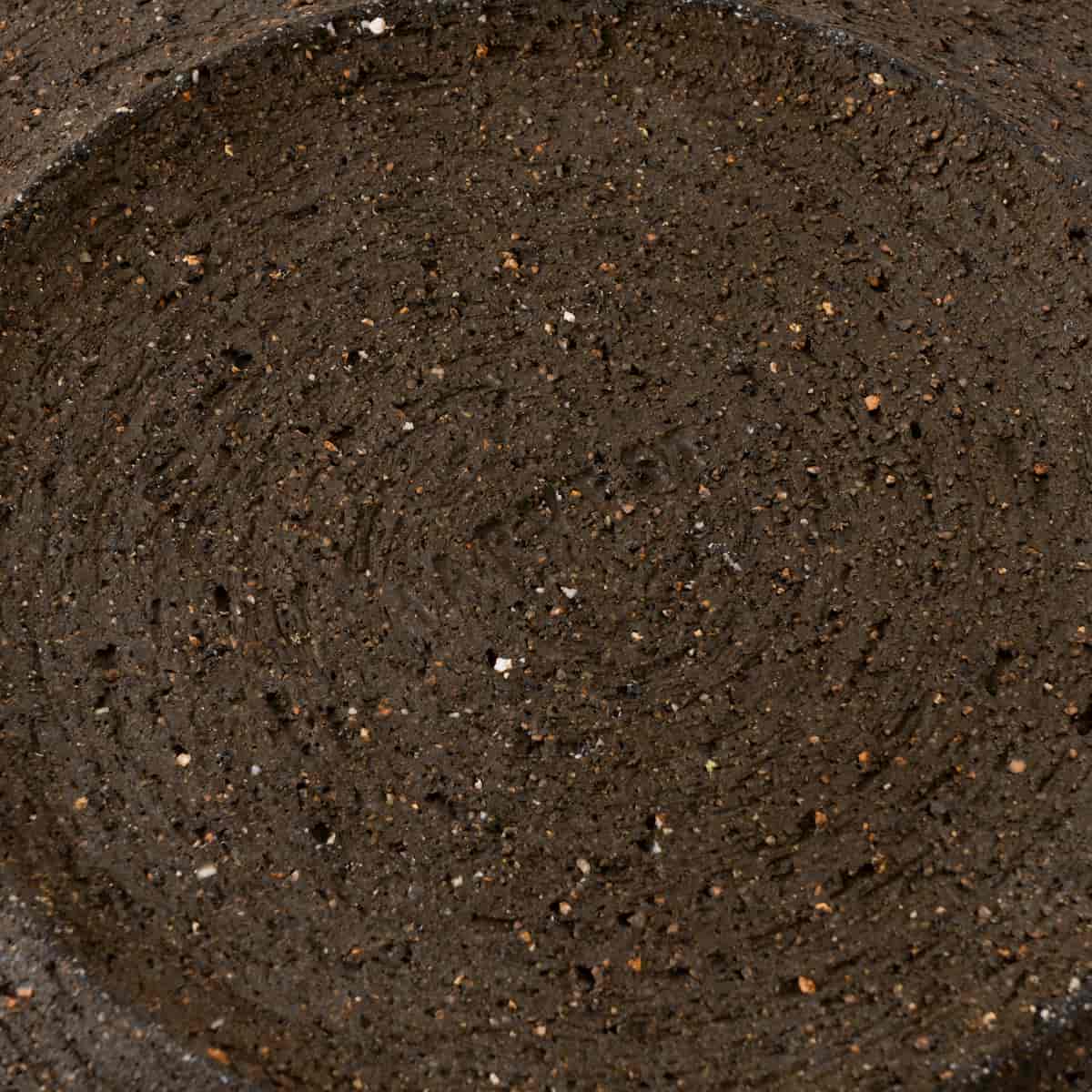 魅力の秘訣は陶土に信楽の粘土+小石も混ぜた「荒土」。他にはない独特の味わいがあるひと皿です。