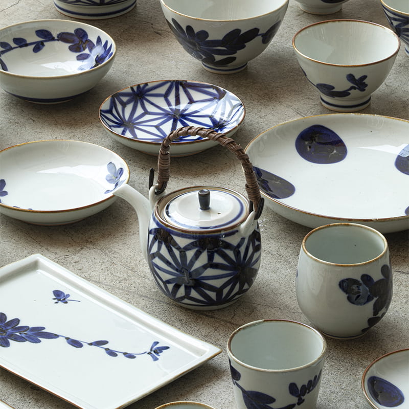 「いろは」シリーズは、グレーがかった白磁に簡略化した呉須の模様が特徴で、