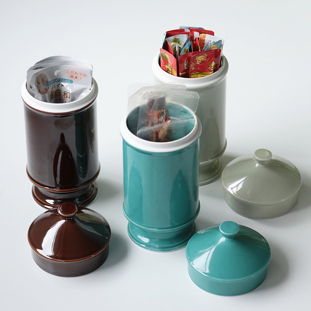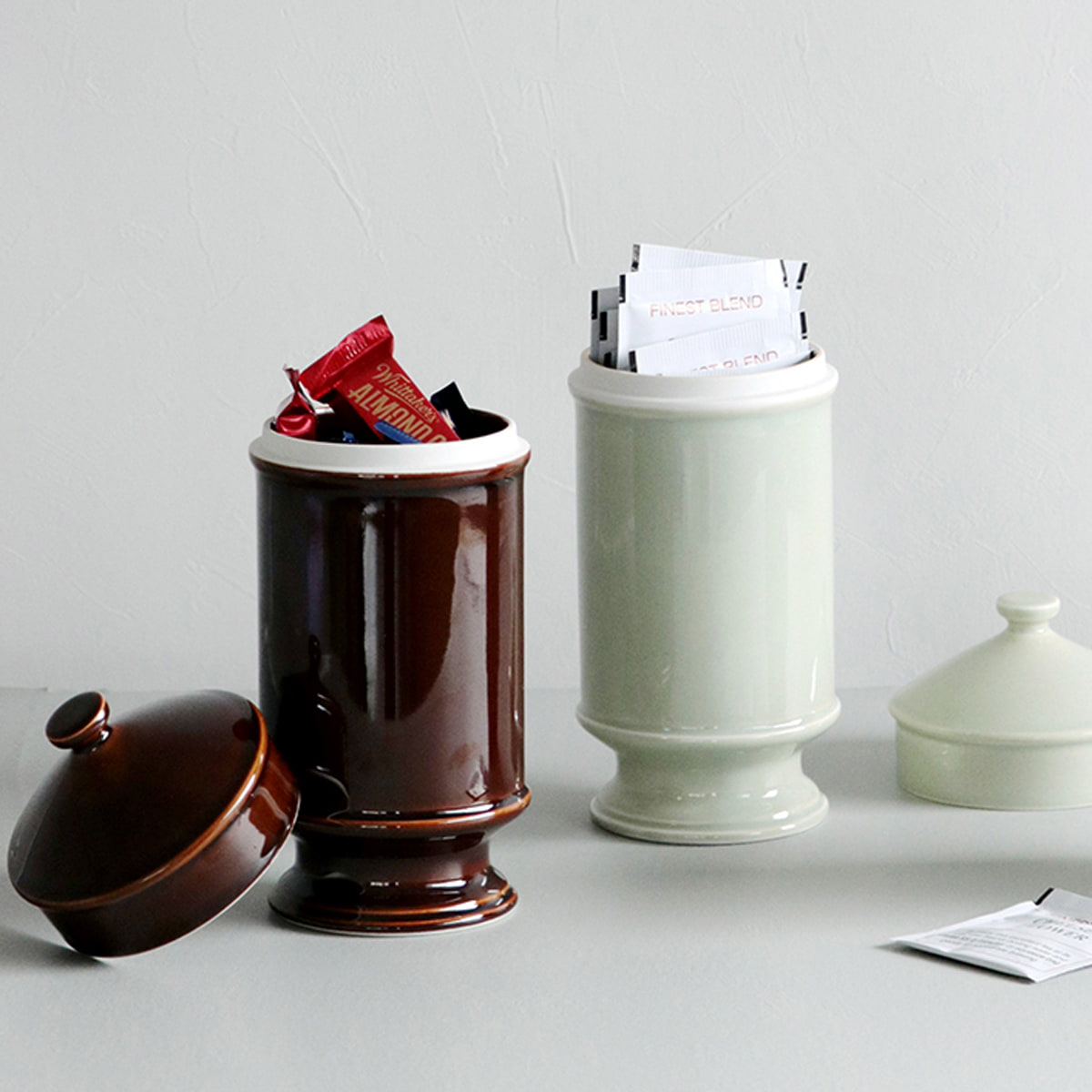 「人とペットが心地よく暮らせる」事をコンセプトに商品を展開しているHASAMIのペットアイテムシリーズ。 すぐ取り出したいけどインテリアとの相性を考えると隠しておきたいペットフード。 スナックキャニスターは、海外のガラスのキャンディジャーのような磁器製のキャニスターで、脚付きのスリムなボディは場所も取らず美しい見た目です。 ※2025年2月入荷分からブラウンの色が変更になりました。 現在当店で販売しているブラウンは画像の通りの色味で、「旧カラー」となります。