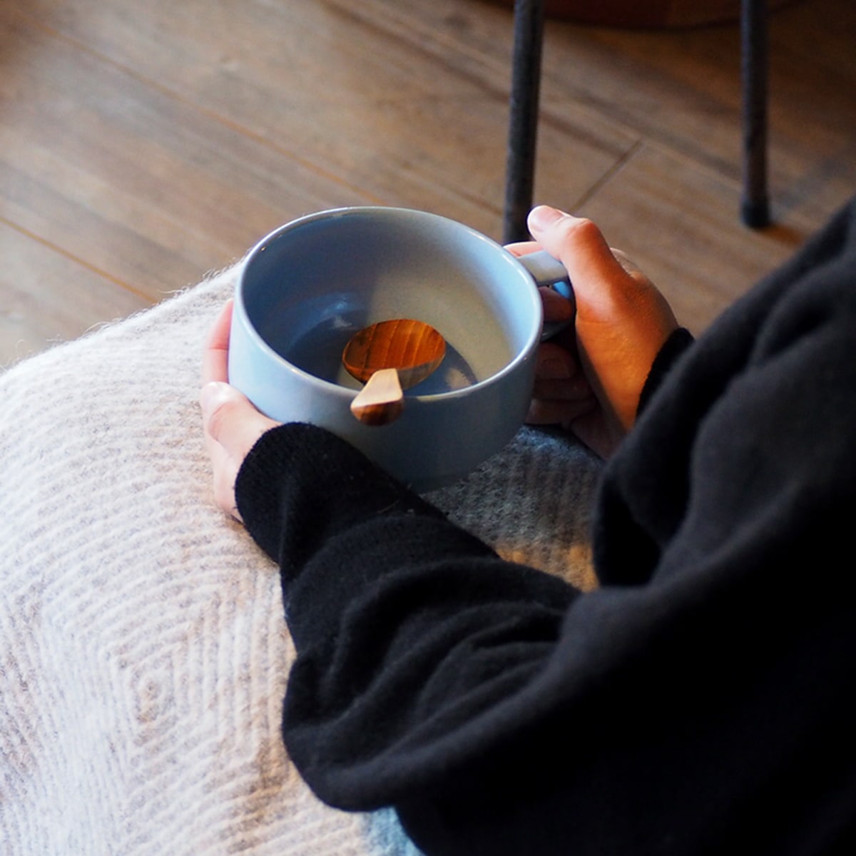 外側のフォルムは無骨で角のあるデザインですが、ハンドルの内側やカップのふちは手に持った感触や口あたりがいいように、