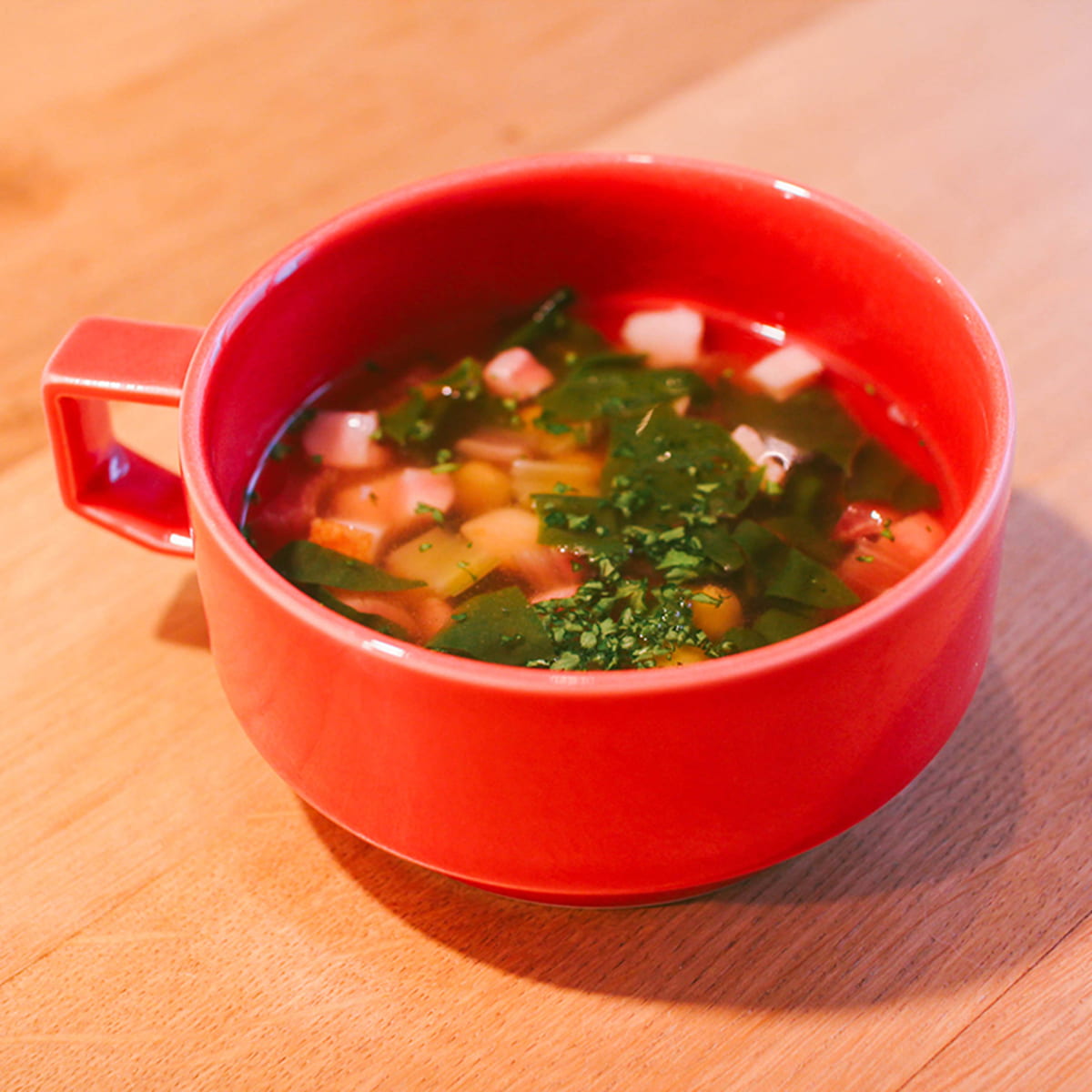 直径約12cmの大きな飲み口のスープマグは、スープやシチュー、鍋の取り分けなど様々なシーンで活躍するアイテムです。<