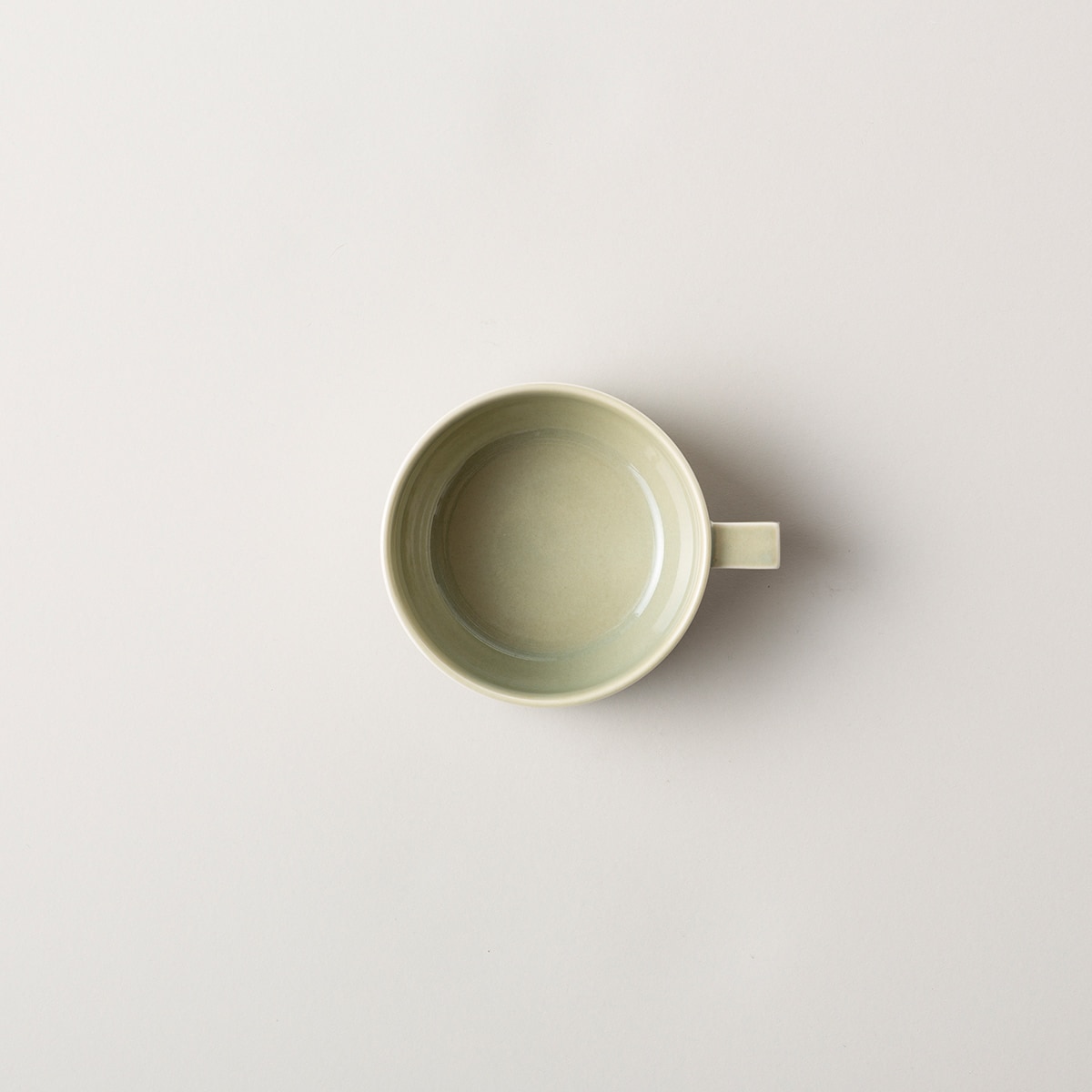 外側のフォルムは無骨で角のあるデザインですが、ハンドルの内側やカップのふちは手に持った感触や口あたりがいいように、また、カップの内側は洗いやすいように丸く仕上げています。