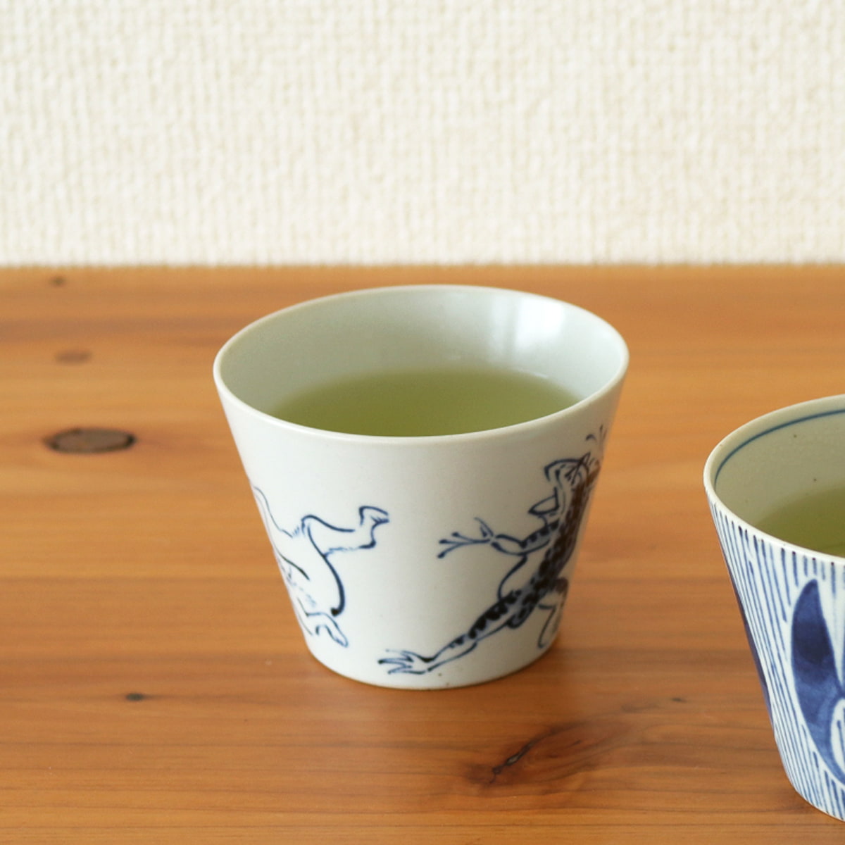 日本最古の漫画といわれる鳥獣戯画(ちょうじゅうぎが)の絵巻物から、 選りすぐりの場面をダイジェストにしてあしらいました。 そばを入れるだけでなく、和え物やデザートを入れたり、湯のみとして使うこともできます。 ご注文から2-3営業日に発送致します。