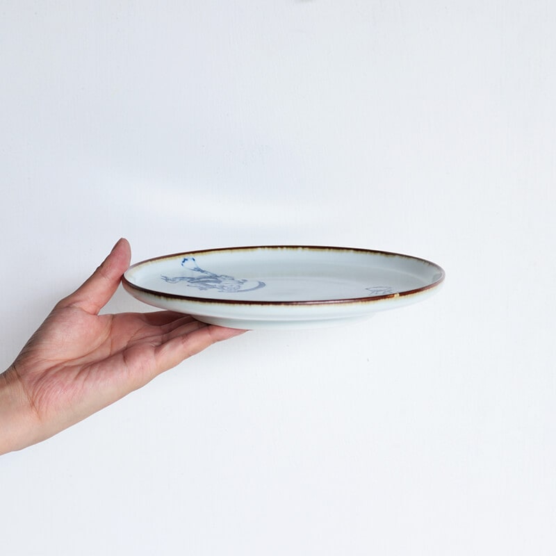 - 電子レンジ、食洗機使用可。 お取り扱いの注意 ・絵柄は銅版転写という技法で作られているため印刷のにじみ、欠け、ズレ等が見られる場合がありますが、商品が持つ味としてお楽しみ下さい。 ・食器の縁に巻いている茶色いサビ絵具は絵具の特性上個体差が生じます。一つ一つ風合いが異なりますので予めご了承ください。 ・やや光沢がなく、絵具が滲みやすいハーフマット釉を使用しております。絵具の滲み加減は環境や条件によって個体差が生じます。 ・急な温度変化によって割れる恐れがありますので、レンジなどで加熱する際は常温に戻してください。また熱い器を急に水につけたりしないでください。 ・部分的な温度変化で割れる恐れがありますので、部分的に高温の状態にならない様に気をつけてお使いください。