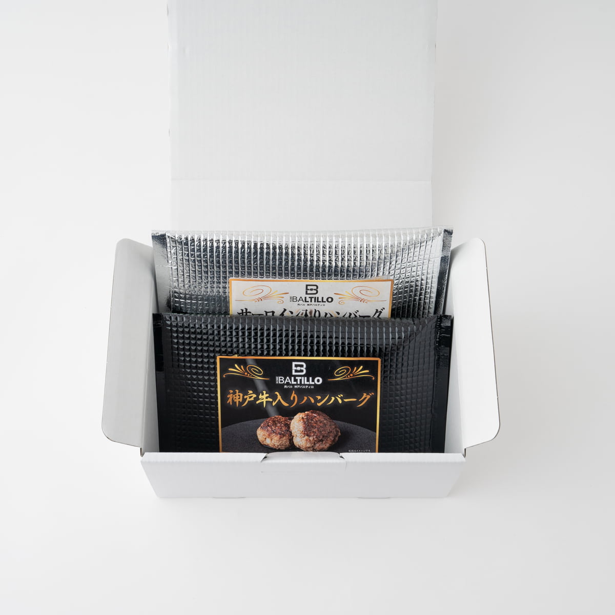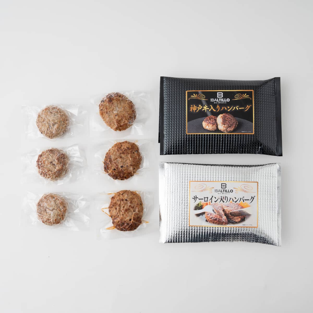 内容量:神戸牛入りハンバーグ100g×3食、サーロイン入りハンバーグ100g×3食 原材料名:神戸牛入りハンバーグ : 牛肉(輸入、国産)、豚肉(輸入)、牛脂(国産)、玉葱、 パン粉、牛乳、鶏卵、赤ワイン、食塩、胡椒、ナツメグ、(一部に乳成分・小麦・卵・牛肉・豚肉を含む) / サーロイン入りハンバーグ : 牛肉(オーストラリア産)、たまねぎ(中国産)、粒状植物性たん白、 つなぎ(パン粉、乾燥卵白)、しょうゆ、でん粉加工品、食塩、にんにくペースト、ウスターソース、 しょうがペースト、香辛料、植物油/加工デンプン、セルロース、調味料(アミノ酸)、 リン酸塩(Na)、着色料(カカオ、カラメル、カロチノイド)、甘味料(カンゾウ)、 香料、(一部に小麦・卵・乳成分・牛肉・大豆・りんごを含む) アルゲン表示:卵、乳成分、小麦、牛肉、大豆、豚肉、りんご 保存方法:要冷凍 賞味期限:出荷日より90日