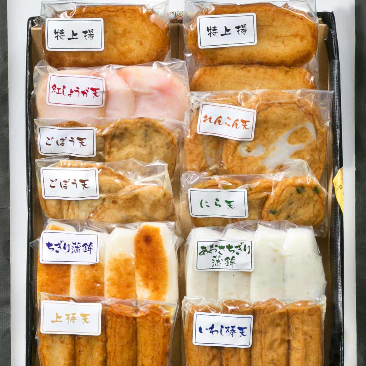 内容量:ごぼう天×6個 あおさちぎり蒲鉾×4個 上棒天×4個 ちぎり蒲鉾×4個 特上揚×4個 いわし棒天×4個 にら天 ×3個 紅しょうが天×3個 れんこん天×2個 アレルゲン表示:卵、小麦 保存方法:要冷蔵 賞味期限:製造日より30日