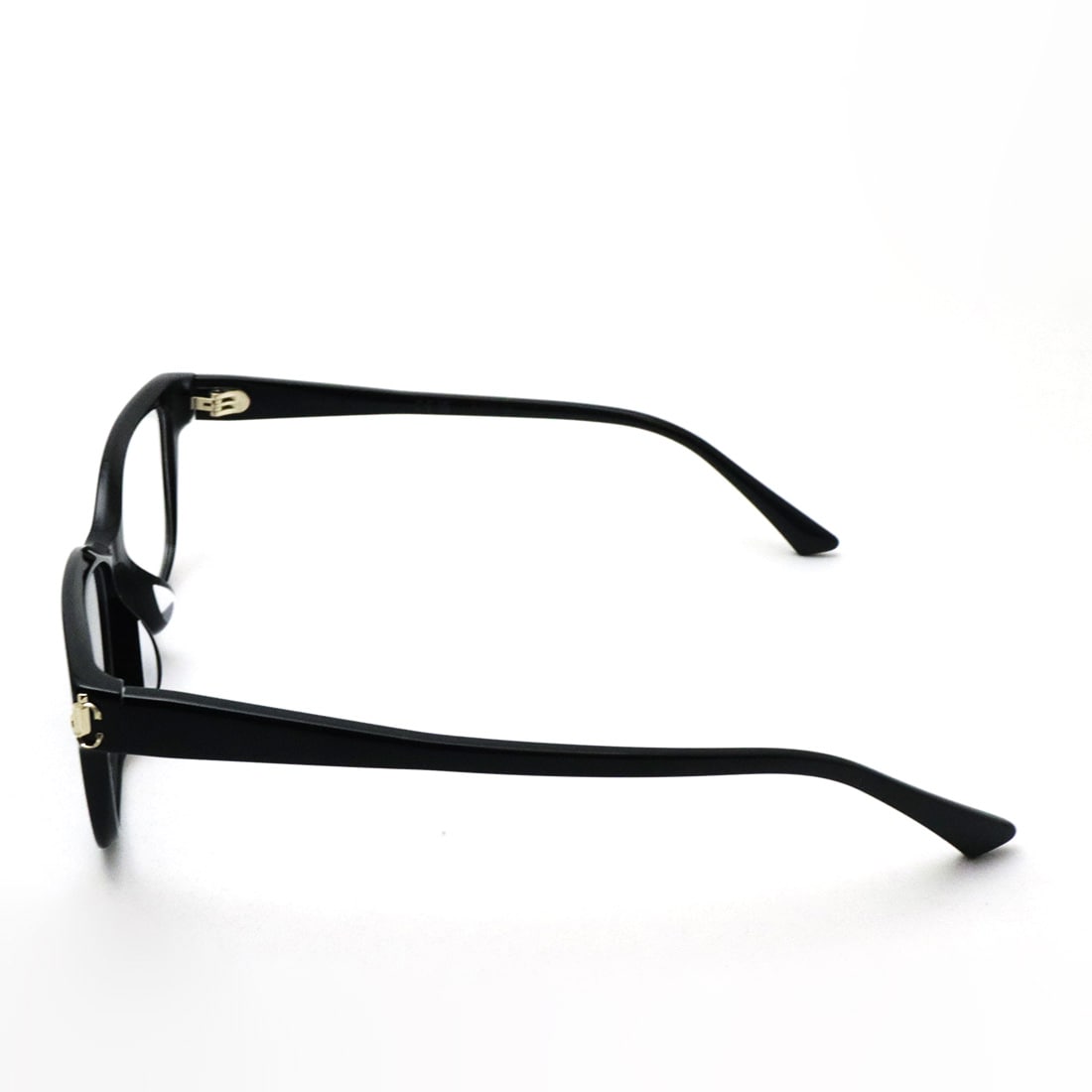 緩やかにテーパードしたテンプルと、ヨロイ部分のメタル製JCロゴが印象的です。