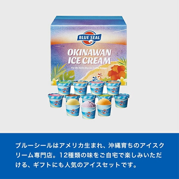 ※写真はイメージとなります。 ■他商品と同時購入不可商品となります。 他商品購入時は注文を分けて購入手続きして下さい。 ■ご注文からお届けに7日前後かかります。 ■沖縄・離島はお届け出来ません。 ■熨斗は短冊のみ対応。 ■長期不在・住所不明により商品が返送された場合の 再発送及び返金は承ることが出来ません。 【商品説明】 ブルーシール定番ギフト商品に直営で人気のOKINAWANフレーバーとアメリカンフレーバーを詰め合わせたギフトセット商品です。各2個入りとなります。贈り物や贈答品に最適です。 【商品内容】 110ml×24個(バニラ、チョコ、ストロベリー、ピスタチオ、バニラ&クッキー、ウベ、沖縄紅イモ、塩ちんすこう、沖縄シークヮーサー、沖縄黒糖、沖縄マンゴー、沖縄パイン 各2個) 【保存方法】 冷凍