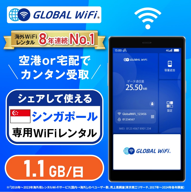 シンガポール wifi レンタル 1日 容量 1.1GB