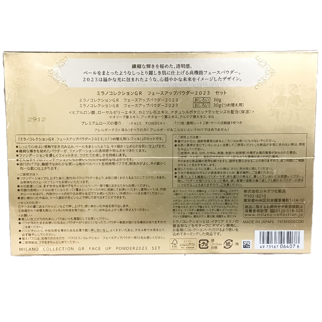 ミラノコレクションGR フェースアップパウダー2023 名画のように麗しい肌。 美術品のようにつくりこまれた容器。 それは、いつになっても 変わることのない、 時を超えた 芸術的な美しさ。 美を創り、感動する。2023年の新作です。 繊細なベールのようなキメ細かさ。 輝きを秘めた透明感に包まれる、至福のとき。 つけたての美しさが続くフェースパウダー。 新作は、温かな気持ちで人々を見守る天使を彫刻しました 内容 30g+ケース (本体)30gのレフィル付きセット 高級パフ付き 今年は携帯に便利なプレストタイプです。