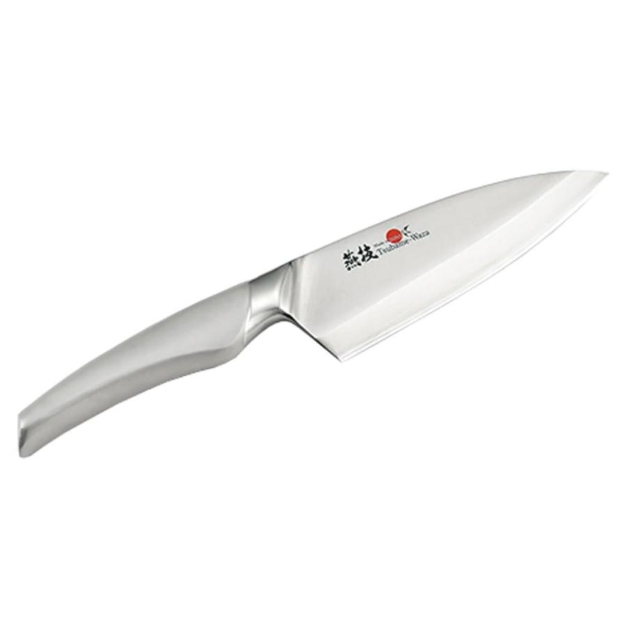 魚をさばくときに便利 洋食器の町燕市が生んだ溶接・研磨の技術を駆使したモナカ構造のステンレスハンドルの庖丁 刃研ぎは熟練の職人が1 丁1 丁丹念に水砥“本刃付け”を施しているので、切れ味に自信有り 刀身材に使用しているモリブデンバナジウム鋼は、高い硬度を有しているので、持続性に優れている オールステンレスで繋ぎ目の無い構造なので、洗い易く汚れ分がたまりにくく衛生的に使用頂ける