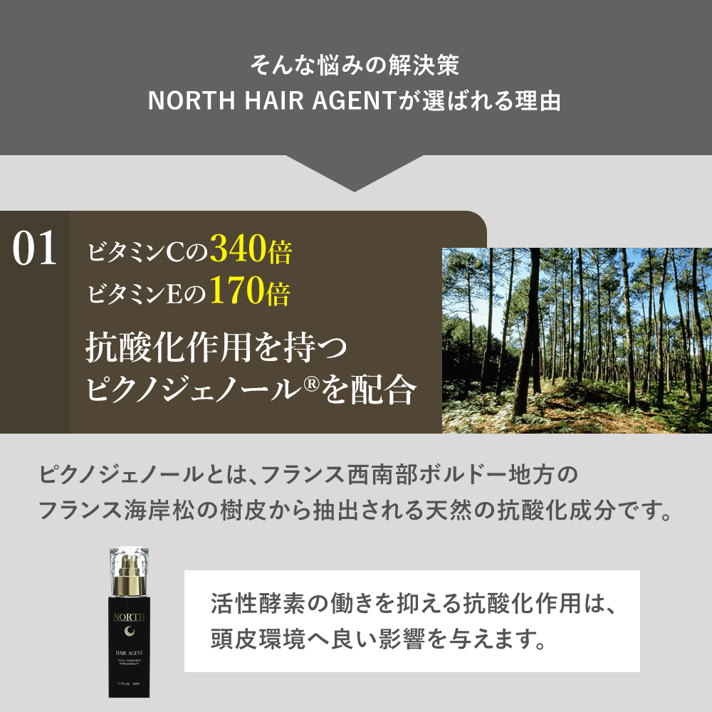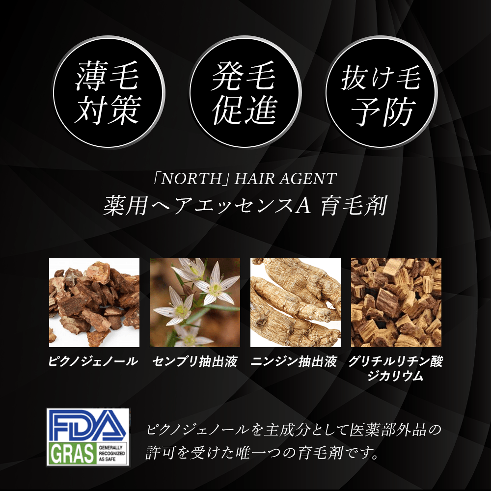 説明 商品の説明 世界初!医薬部外品として唯一認定されているピクノジェノール配合育毛剤`NORTH' 有効成分が頭皮環境、頭皮のめぐりを整え、育毛をサポートします。 自然由来の成分を中心に配合し、産後や更年期など、デリケートな頭皮の方にも使いやすい処方です。 使用方法 適量を手に取り頭皮に直接塗ってご使用ください。 安全警告 頭皮に異常が生じていないかよく注意してご使用ください。使用中、赤み、かゆみ、はれ、刺激、色抜け(白斑等)や黒ずみ等の異常が現れた場合は使用しないでください。