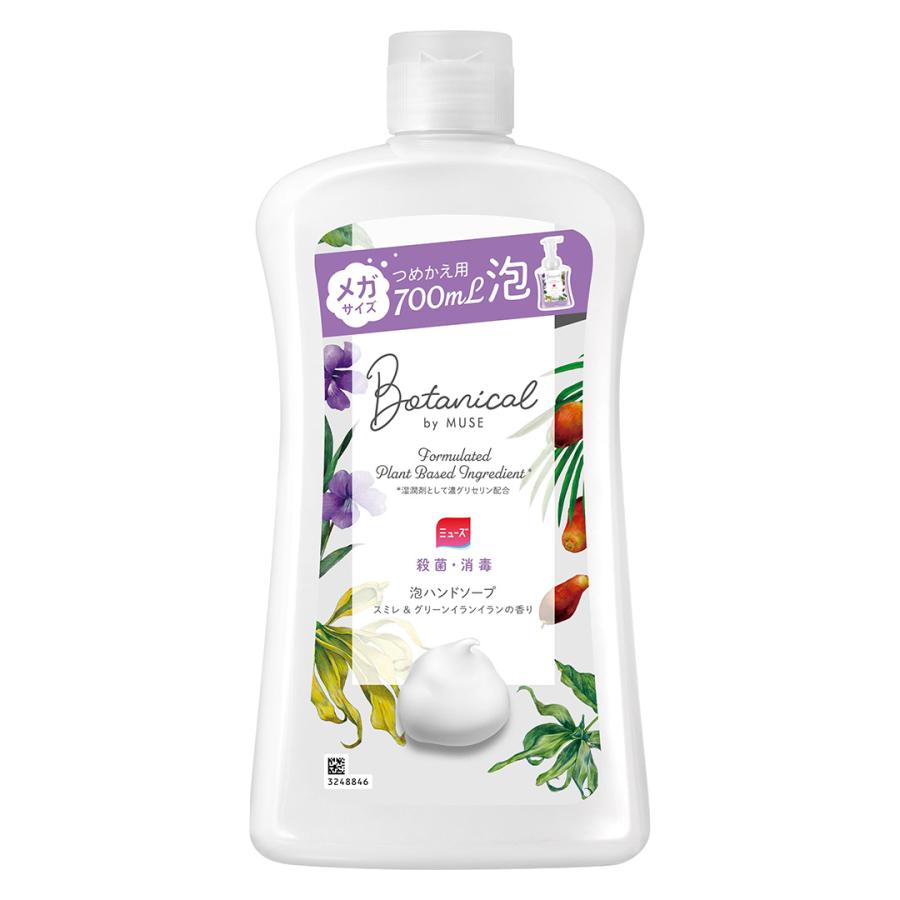 【薬用せっけん ミューズ 泡ハンドソープ ボタニカル 詰替え ボトル メガサイズの商品詳細】 ●トータル予防*1処方 ●ボタニカルbyミューズ泡ハンドソープ ●スミレ&グリーンイランイランの香り ●「Botanical by Muse(ボタニカルbyミューズ)」は、肌に近いpHで、殺菌成分配合の泡ハンドソープ。植物由来の保湿成分*2、植物由来の2種類の洗浄成分*3を配合しています。 *1 体臭・汗臭・にきびを予防すること *2 湿潤剤として濃グリセリン *3 洗浄剤として