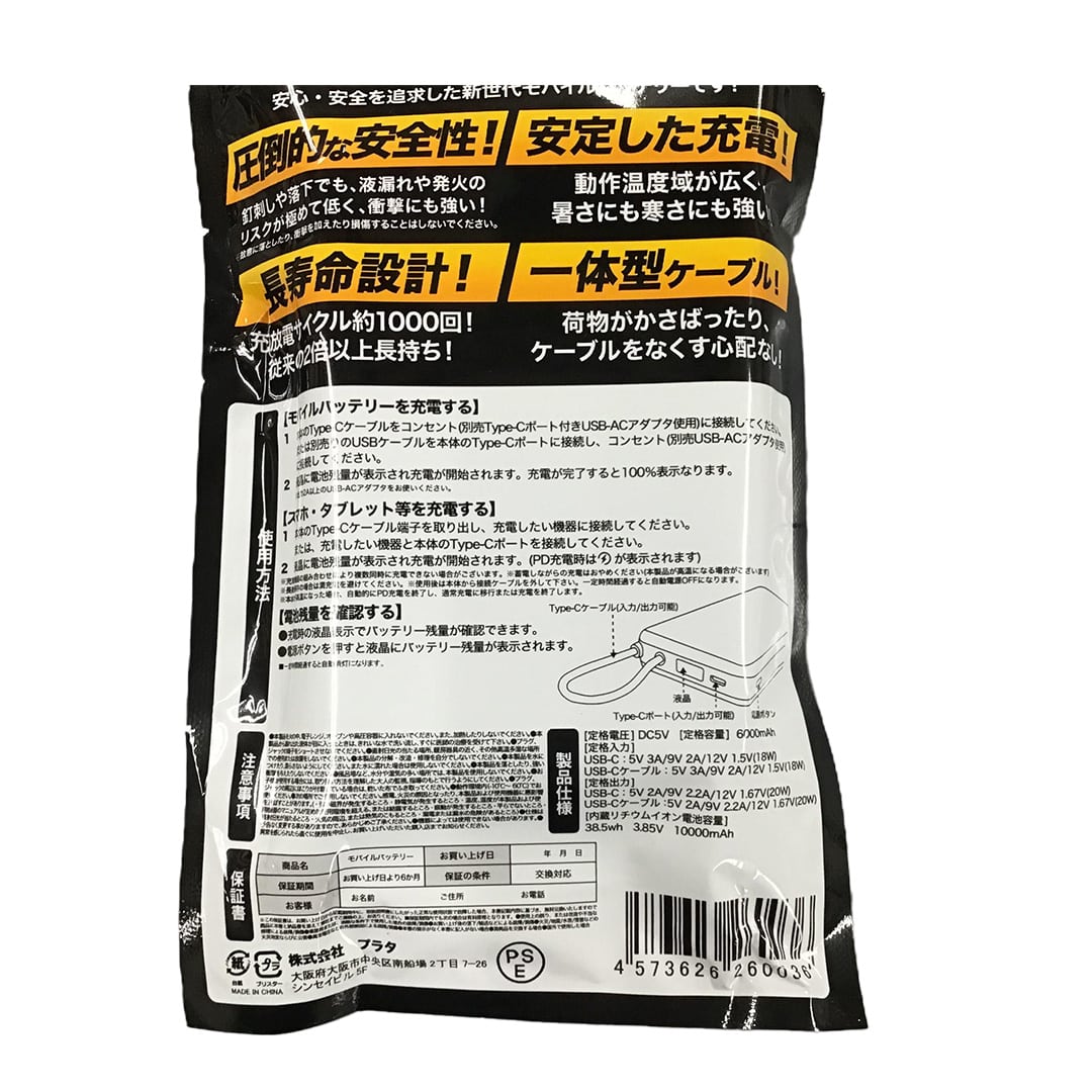 ■新世代固体電池モバイルバッテリー! 従来のリチウムイオンモバイルバッテリーは電解質が液体の為、落下等の外部からの衝撃、過充放電、使用環境等によってセパレーター(絶縁体)が損傷、正極・負極の電解質が液漏れ・接触してショートし、発火や爆発を起こすリスクがありました。本製品はゲル状電解質を用いた固体電池(半固体電池)を採用!正極・負極の接触・発火リスクを大幅に低減し、安全性を飛躍的に向上させたモバイルバッテリーです! ■安心・安全のPSE技術基準適合! 安心・安全のPSE技術基準に適合した商品です。 サイズ(約)縦105×横67×厚み18mm 重量(約) 190g