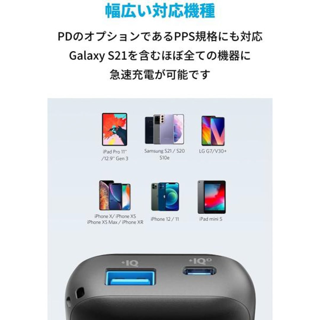 ■主な製品仕様 ・サイズ:約 107 x 52 x 27 mm ・重さ:約 194 g ・USB-C 入力:5V = 3A / 9V = 2A ・USB-C 出力:5V = 3A / 9V = 2.78A ・USB-C PPS 出力:3.3-6V = 3A / 3.3-11V = 2.78A(最大25W) ・USB-A 出力:5V = 3A / 9V = 2A / 12V = 1.5A ・USB-A Protocol 出力:4.5V = 5A / 5V = 4.5A 合計最大出力: ・25W (USB-Cポート単体での充電時) ・15W (2ポート同時充電時) 容量:10000mAh ・バッテリー本体充電時間:2.8 時間 ※18W出力のPD対応充電器およびUSB-C & USB-Cケーブルを利用した場合 ■商品説明 ・iPhone 15、Galaxy S24の急速充電:従来品のAnker PowerCore 1000 PD Reduxを25W出力にアップグレード。iPhone 15シリーズとGalaxy S24の急速充電に対応。一般的な5W出力の充電器と比べて最大3倍の速さで充電できます。(※iPhone 15を0%から30分充電した場合との比較) ・コンパクトで大容量:Anker PowerCore 10000 PD Redux 25Wは、iPhone 15を2回以上、Galaxy S24を1回以上充電できます。 ・プログラマブル電源(PPS)対応:USB Power DeliveryのオプションであるPPS規格に対応しています。出力電圧と電流は20mVと50mA単位で最適化され、Galaxy S22などのUSBデバイスの発熱を抑えながらフルスピード充電が可能です。 ・本製品をフルスピード充電:USB PD対応急速充電器とUSB-C&USB-Cケーブルを使用すると、本製品を約2.8時間でフル充電できます。 ・パッケージ内容: Anker PowerCore 1000 PD Redux 25W、USB-C & USB-Cケーブル (Micro USBケーブルとLightningケーブルは別売り)、ストラップ、ユーザーマニュアル Ankerグループのすべての対象製品(モバイルバッテリー・急速充電器・イヤホン等)は、PSEマークの取得に必要な技術基準に適合しております。 届出事業者名:アンカー・ジャパン株式会社 PSマークの種類:PSE