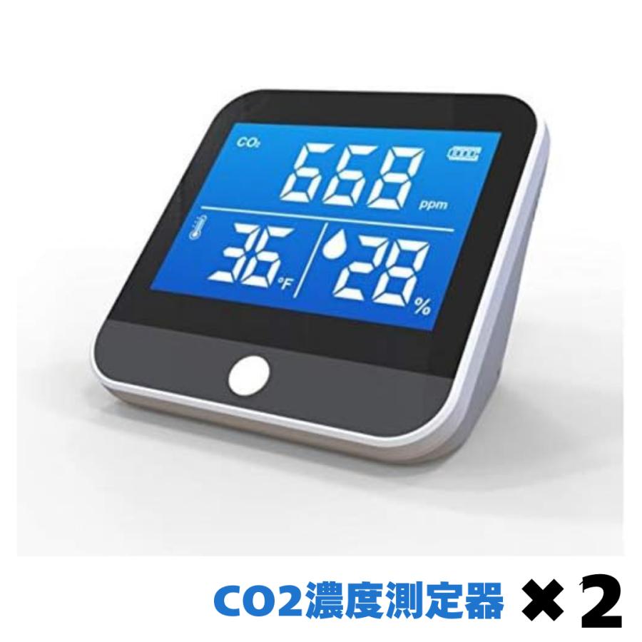 CO2濃度測定器ユアチェッカー 2個セット NDIR方式採用。 換気のタイミングをお知らせするアラート機能付、コンパクト二酸化炭素濃度測定器! デジタルディスプレイで、二酸化炭素濃度、温度、湿度をリアルタイムで監視でき、空気の状態を見える化し、過密状況を把握して換気するタイミングを知ることができます。 〈C02濃度測定範囲〉400~5000ppm 〈温度〉-10℃?50℃ 〈湿度〉20%?85% 〈製品サイズ〉高さ約90mm・幅約90mm・奥行き約50mm 〈重量〉約200g 〈測定精度〉温度±1℃・湿度±4% 〈商品内容〉本体 , USBケーブル , 保証書兼説明書
