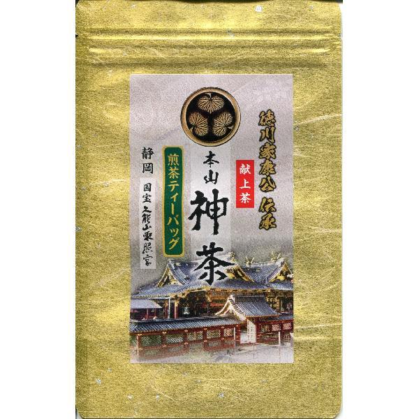【本山神茶 : 国宝久能山東照宮 献上茶】 神茶は国宝に指定されている徳川家康公を祀る全国初の神社、久能山東照宮に献上を許されたお墨付きのお茶です。 家康公が愛飲した静岡本山茶をご賞味ください。 【生分解性フィルター】 とうもろこしの澱粉から作られた、地球に優しいフィルターを使用しています。ご使用後、土に埋めると加水分解後微生物によって完全に分解 されます。新たに開発された煎茶専用の三角バッグで、茶葉が広がりやすく、煎茶の風味をそのまま味わっていただけます。