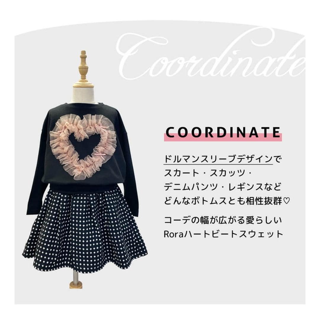 | 商品説明 | ・■ハートビートスウェットについて ・さぁ、ふんわりキュートな 世界の扉を開きましょう ・~インディーピンクとブラックの魔法のようなカラーコンビネーション、コットンキャンディのようなふんわりチュールハートが 女の子の心をときめかす、まるでおとぎ話の中に迷い込んだような気分になる。どうしても手に入れたくなるハートビートスウェットT♪程よい厚みのスウェット地は重たくないから子供の動きも思いのまま♪心地よい肌触りで、自然な防寒性、吸湿性、吸汗性は、これからの秋冬春3シーズンを快適にサポートします!不思議な世界への扉を開けて女の子の夢と成長を楽しんでみませんか。 ・是非トップスを手に取って、夢のような体験をしてみてください! ・■モデルサイズ:身長108cm体重18.5kg ・■着用サイズ:110cm |