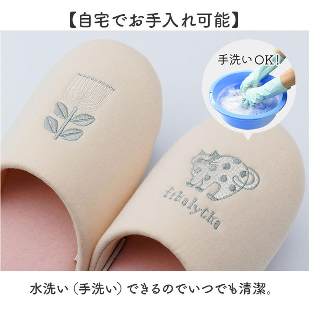 | 商品説明 | 【猫の刺繍がキュート】やさしい履き心地の「fika lyckaソフトスリッパ」 【おしゃれで上品】肌触りの良い生地感と内側はクッション性があるので疲れにくい◎ 【バイカラーがアクセント】インテリアに馴染む色合いで履いても並べても可愛い。 【底面滑り止め付き】足裏はフローリング階段など滑りやすいところでも安心して履ける。 【自宅でお手入れ可能】水洗い(手洗い)できるのでいつでも清潔。 【カラバリを愉しむ】自宅用はもちろん来客用として揃えるのもおすすめ。 |