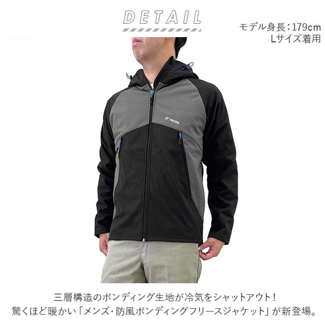 | 商品説明 | ・三層構造のボンディング生地が冷気をシャットアウト!驚くほど暖かい「メンズ・防風ボンディングフリースジャケット」が新登場。 ・緻密なポリエステル素材で仕上げた表生地と、裏生地との間に「防風フィルム」をラミネートした3層構造で、身体の周囲の暖かい空気をキープ。 ・ジャケットの前合わせ部分には防風性の高いファスナーを使用。さらに襟の立ったハイネックデザインで冷たい木枯らしの吹く日でも、身体を寒さからしっかりガード。 ・ファスナー開口部には、金属の冷たさが首周りに触れにくいファスナーガードを装備。 ・裏地はふんわりと起毛処理加工が施されたフリース生地を使用しているので、保温性も着心地も抜群。 ・すっぽりと被れるフードのフチは、首元のドローコードでキュッと絞ることが可能。 ・左右の胸の位置にはスマホもお財布も余裕で収納できる!裾まで深さのある便利なファスナーポケットを配置。 ・左胸の「TULTEX」のロゴは自動車のヘッドライトを反射するリフレクター素材で描かれており、夜間の外出時でも安心。 ・暖かさとスタイリング、どちらにも妥協しない生地の厚みを抑えたすっきりとしたシルエットで、秋冬時期のアウトドアやウォーキングなどのフィットネスに大活躍! |