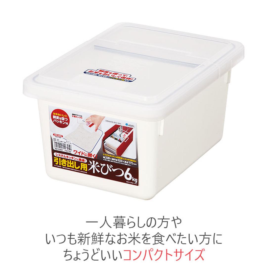 | 商品説明 | ・システムキッチンの引出しにすっきり収まる「引き出し用米びつ(6kg)」が発売。 ・お米を湿気や酸化から守るパッキン付きだから、お米のおいしさを長期間キープ! ・お米がすくいやすい形状の計量カップが付属。普通米と無洗米それぞれに対応した目盛りが付いているので、使い勝手は抜群。 ・一人暮らしの方や、いつも新鮮なお米を食べたい方にちょうどいいコンパクトサイズ。 ・シンプルなカラーと構造も◎ |
