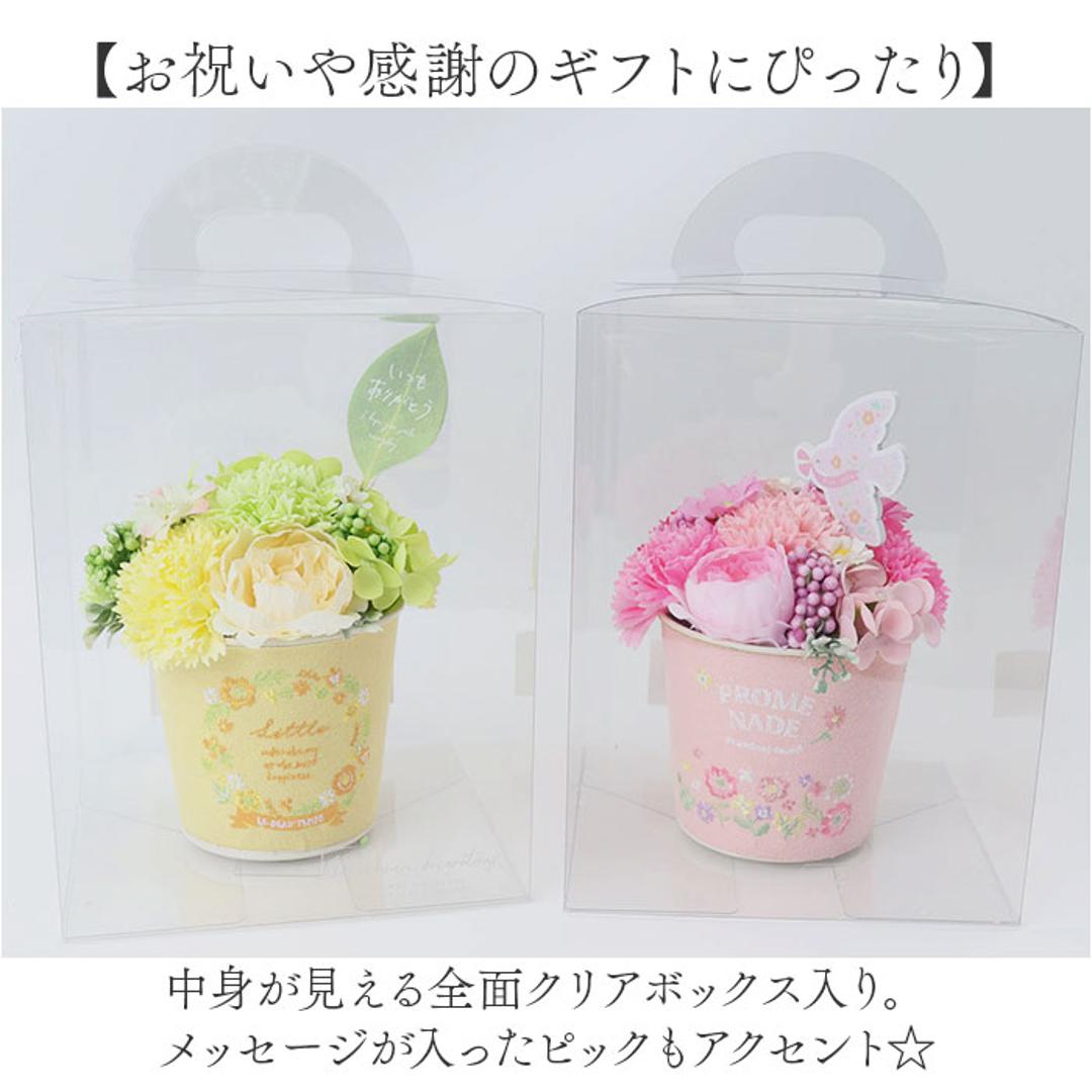 | 商品説明 | 【手軽に彩りをプラスできるアイテム】 ・インテリアに馴染む、ポット入り♪おしゃれに飾れる「ブリキソープフラワー」。 【お花と相性ばっちりな刺繍ポット】 ・繊細な刺繍デザインを施したブリキポット&色とりどりのアーティフィシャルフラワーがマッチ♪ 【生花のようなソープフラワー】 ・造花と石鹸素材から作られた、観賞用フラワーアレンジメント。生花さながらの美しい色合い♪ 【面倒なメンテナンスは不要】 ・水をあげるなどのお手入れは必要なし。枯れることなく、長く楽しめるのが嬉しい! (※)水濡れや直射日光にご注意ください。 【ソープならではの香りも楽しめる】 ・置いておくだけで、香りがふんわり広がる♪空間を華やかに演出し、心にも癒しを。 【お祝いや感謝のギフトにぴったり】 ・中身が見える全面クリアボックス入り。メッセージが入ったピックもアクセント☆ |