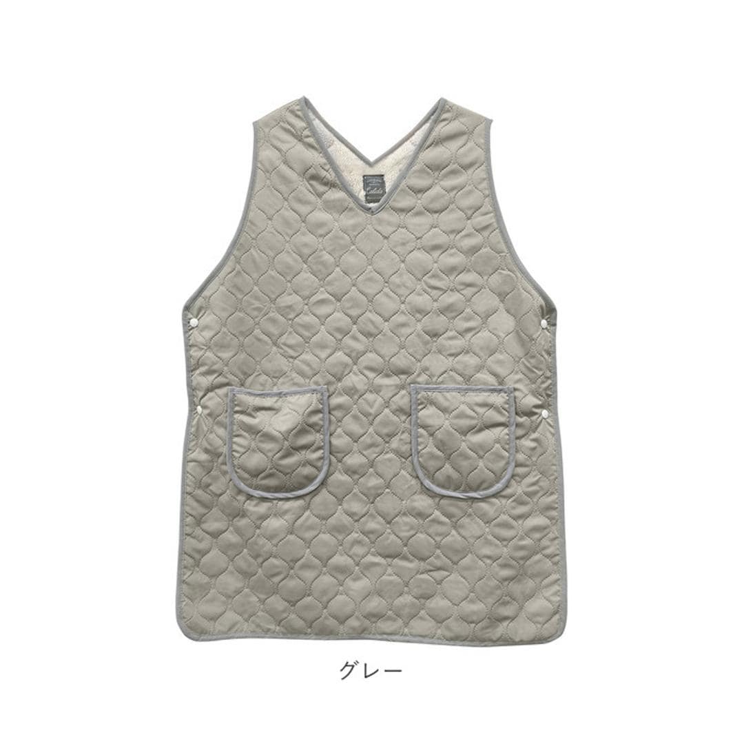| 商品説明 | ・ふんわり暖かい☆裏ボア素材のエプロンが登場。 ・内側には軽くて柔らかい肌触りのボア素材。 ・あると何かと便利な前ポケット×2にも内側にボア付き。 ・着脱楽チン♪両脇スナップボタン。 ・ミディアムな着丈で動きやすい◎家事や作業の邪魔になりにくく気軽に着れる袖ナシタイプ! ・汚れが気になったら、ご自宅で洗濯が可能!いつでも清潔に保てる◎(※洗濯する際は洗濯ネットに入れて下さい。) ・表面は大人可愛いタイルキルト柄。 ・流行りのくすみカラーで落ち着いたカラー展開なので、エプロンとしてだけでなく、防寒対策のルームウェアとしても活躍! |