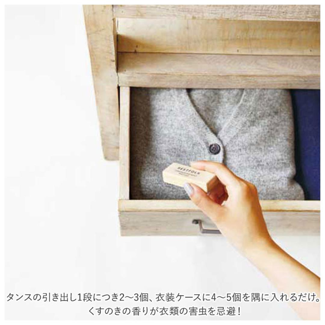 | 商品説明 | ・くすのきの力で大切な衣類を守る!CAMPHOR(カンフル)ツリーブロック 24pcsが新登場。 ・「虫よけの木」として知られ、オランダ語で”カンフル”と呼ばれる”くすのき”。 ・九州産のくすのきのみを使い、職人の手で丁寧に作られたツリーブロック。 ・くすのきの木片を水蒸気蒸留で抽出し結晶化させた「樟脳」といわれる天然の防虫剤。化学物質などが含まれておらず、人にも環境にも優しいのが嬉しい! ・くすのきの持つメンソールやユーカリのような清涼感あふれる爽やかな香りは、化学薬品では出せない独特の自然香。 ・高い防虫効果を発揮するだけでなく、消臭効果やリラックス効果も♪ ・タンスの引き出し1段につき2~3個、衣装ケースに4~5個を隅に入れるだけ。くすのきの香りが衣類の害虫を忌避! ・揮発性に優れており、衣装ケースから出した時はの香りがしっかりと香るものの、空気や天日にさらすことで香りが落ち着くのがポイント。 ・ブロックの香りが弱くなったら、当店別ページで販売中のCAMPHOR カンフルオイル(商品コード:camphoroil)を塗り足せばOK。繰り返し使えてとってもエコ◎ ・1つ1つ異なる天然木特有の色合いや風合いも魅力。 ・ナチュラルなウッドケース入り♪ |