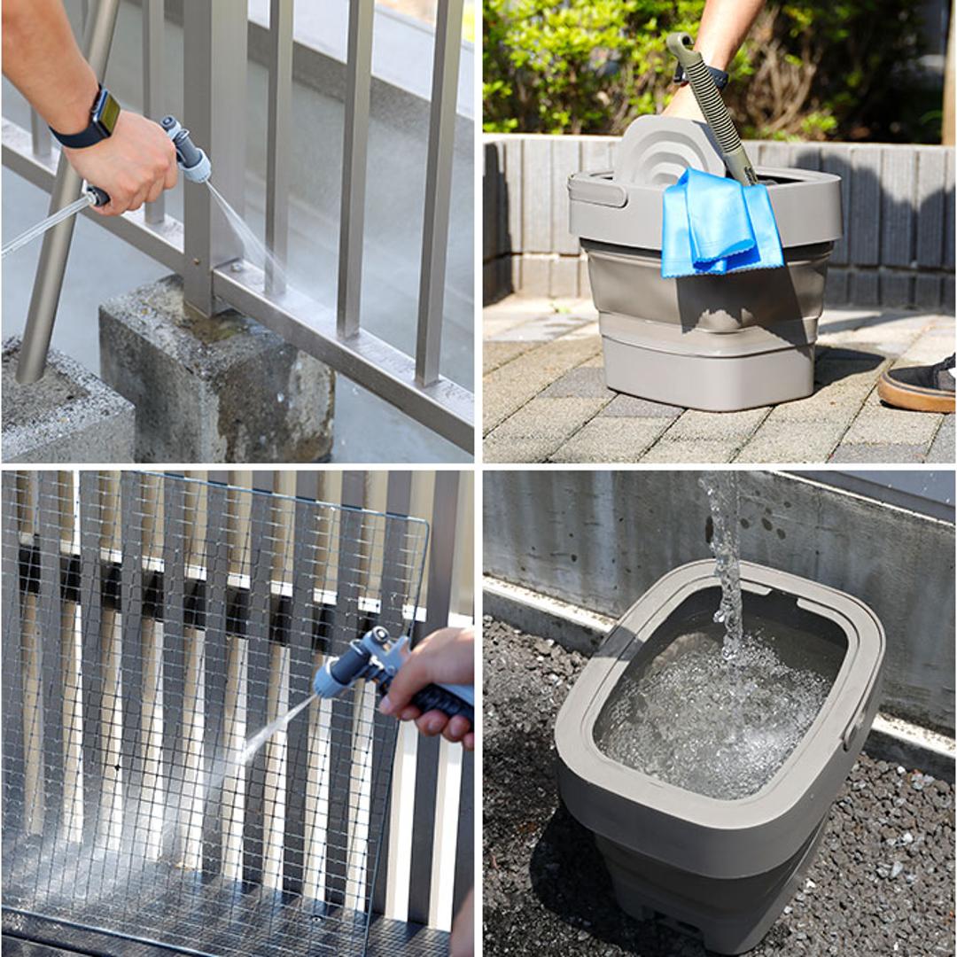 | 商品説明 | 【水の力でスッキリ高圧洗浄!】 ・外回りの汚れも手軽に落とせる頼れるポータブル洗浄「ジェットボーイ」が登場。 【手軽に汚れを飛ばす水圧】 ・ホコリや砂汚れをサッと流せる強めの水圧。日常の掃除も年末の大掃除もラクにこなせる◎ 【幅広く使える多用途設計】 ・洗車や自転車、ベランダに窓周り、運動靴まで頼れるシーンが多い万能アイテム。 【2WAYで使える便利構造】 ・本体が水汲みバケツとしても使え、仕上げの拭き掃除までスムーズに完結できる扱いやすい設計。 【コードレスで自由な操作性】 ・電源も水源も不要の充電式。場所を選ばずどこでも使えてストレスフリー。 【安心の使用時間と充電時間】 ・約5時間の充電で約10分連続使用でき、短時間の掃除に便利な実用性能。 【折りたためるコンパクト形状】 ・収納しやすい折りたたみ設計。持ち運びしやすく、収納スペースにも困らない! 【安心して使える防水性能】 ・IPX6相当の防水仕様で多少の水濡れにも強い安心感のあるアウトドア向き性能。 【たっぷり使える9L容量】 ・約9L入る大容量でしっかり水を確保でき、屋外作業でも頼れる使い勝手の良さが◎ 【洗剤使用OKの実用性】 ・中性洗剤を入れて使えるため、汚れの強いシーンにも対応できる心強い洗浄機能。 (※)中性洗剤に記載されている適切な希釈倍率を守り、使用後は真水でホース内・本体内の洗剤を洗い流してください。 【簡単ステップで操作完了】 ・パーツを出してホースを差し込み、水を入れたら電源を入れるだけのシンプル操作! |