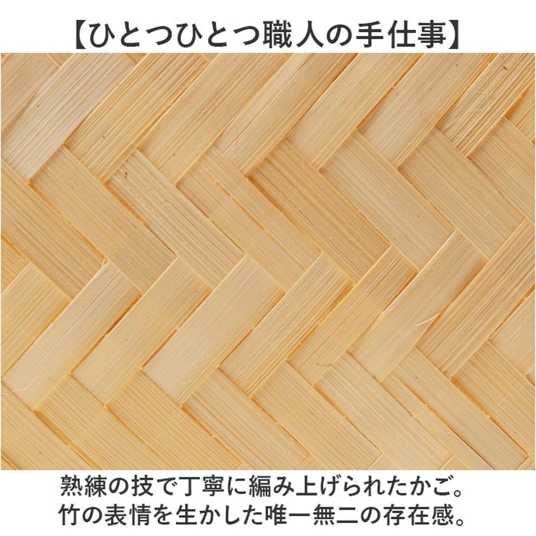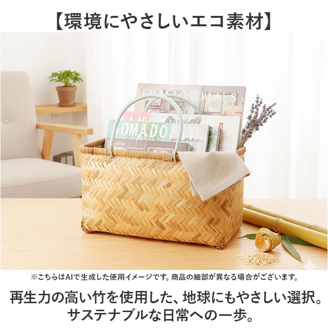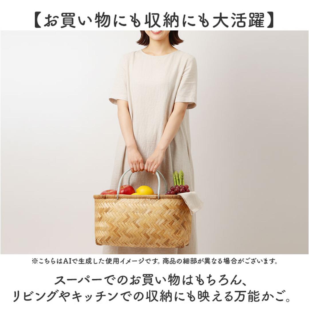 | 商品説明 | 【使うほどに愛着が増す竹のかご】 ・ナチュラルな温もりと使いやすさを兼ね備えた「市場かご」が登場。 【お買い物にも収納にも大活躍】 ・スーパーでのお買い物はもちろん、リビングやキッチンでの収納にも映える万能かご。 【通気性のよさで野菜も長持ち】 ・竹ひごの通気性が野菜の鮮度をキープ!ナチュラルな暮らしに寄り添う保存アイテム。 【軽くて丈夫、使い勝手のよさが◎】 ・底面に力竹の補強入り。しなやかで弾力ある竹が食材を守り、マチ広でたっぷり入る安心の収納力 【やさしい握り心地の持ち手】 ・ビニールチューブの持ち手は手に馴染み、長時間の持ち運びも手や腕が痛くなりにくく快適。 【ひとつひとつ職人の手仕事】 ・熟練の技で丁寧に編み上げられたかご。竹の表情を生かした唯一無二の存在感。 【自然素材が生む美しい経年変化】 ・使うほどに色ツヤが増し、深みを帯びる竹の風合い。時とともに育つ暮らしの相棒。 【環境にやさしいエコ素材】 ・再生力の高い竹を使用した、地球にもやさしい選択。サステナブルな日常への一歩。 |