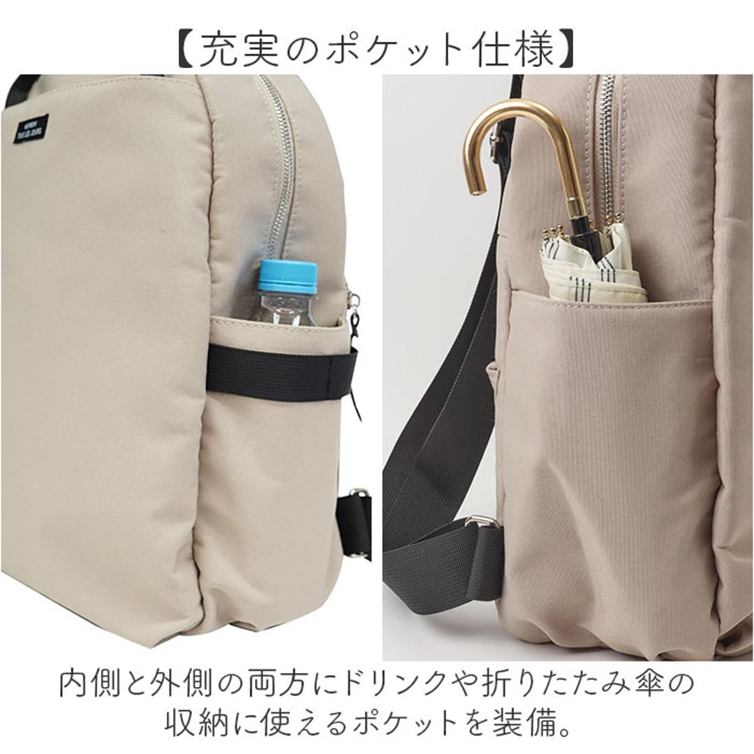 | 商品説明 | 【1年中使えるデイリーアイテム】 ・通勤通学から休日まで活躍♪落ち着いた雰囲気で持てる「マチュア シンプルリュック 」。 【大きく開くメインルーム】 ・ダブルファスナー式で左右どちらからも開閉可能。 【収納力抜群】 ・ポーチやお弁当箱、A4サイズもINできてマストアイテムがしっかり入る。 【タブレットもすっぽり】 ・内側にはクッション性のオープンポケット付き。 【整理整頓しやすい】 ・正面にはB5サイズが入るスナップボタン式のポケットを配置。 【充実のポケット仕様】 ・内側と外側の両方にドリンクや折りたたみ傘の収納に使えるポケットを装備。 【シークレットポケット】 ・背面のファスナーポケットは、お財布などの貴重品の防犯対策にも◎ 【出し入れしやすい】 ・リュックを背負ったまま荷物の出し入れができるメインルーム直結ファスナー付き。 【軽量で持ち運びラクラク】 ・上部のハンドルをスナップボタンでまとめれば手持ちスタイルもできる。 |
