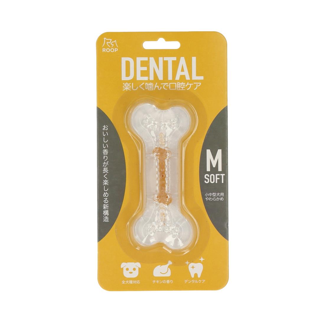商品説明・楽しく噛んで、口腔ケア!おもちゃ感覚で遊びながらワンちゃんの歯の健康をサポートする「ROOP デンタルソフトボーン(Mサイズ)」が新登場。