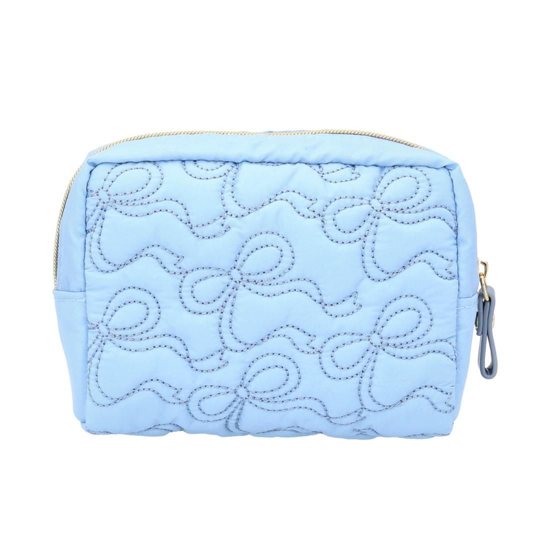 ・ふんわりキルティングに、リボンなどのモチーフをプラス。年代問わず使えてギフトにも♪