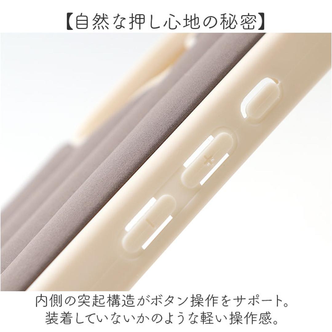 ・サイドは弾力のあるフロスト加工TPU素材を採用。さらっとした手触りで落下時の衝撃を吸収。