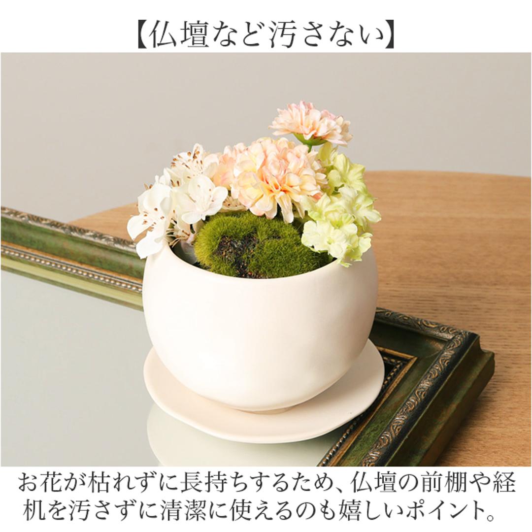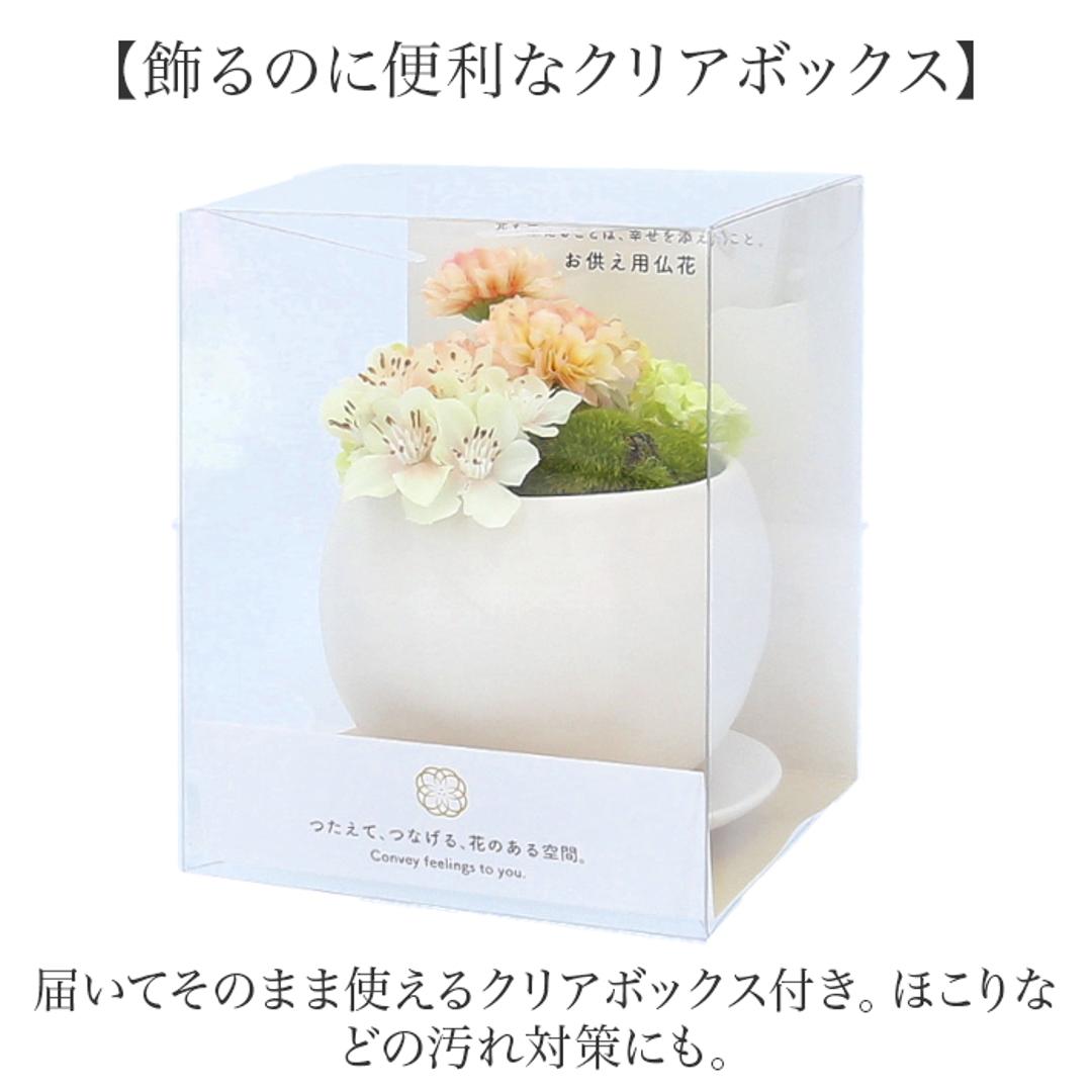 | 商品説明 | 【いつまでも綺麗なお花を捧げる】 ・いつまでも綺麗なお花を捧げたい。そんな願いが叶うフェイクグリーンの仏花アレンジメント♪ 【水やりなどお世話不要】 ・一番のポイントはお世話要らず◎フェイクグリーンなので水やりの必要もナシ! 【仏壇など汚さない】 ・お花が枯れずに長持ちするため、仏壇の前棚や経机を汚さずに清潔に使えるのも嬉しいポイント。 【飾るのに便利なクリアボックス】 ・届いてそのまま使えるクリアボックス付き。ほこりなどの汚れ対策にも。 |