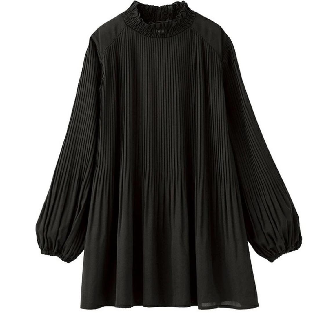 商品名プリーツで細見え大人の上品ブラウス