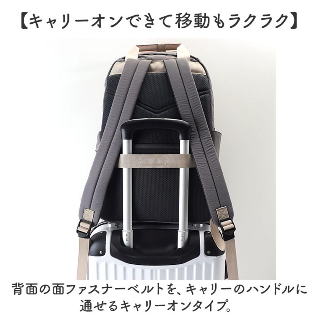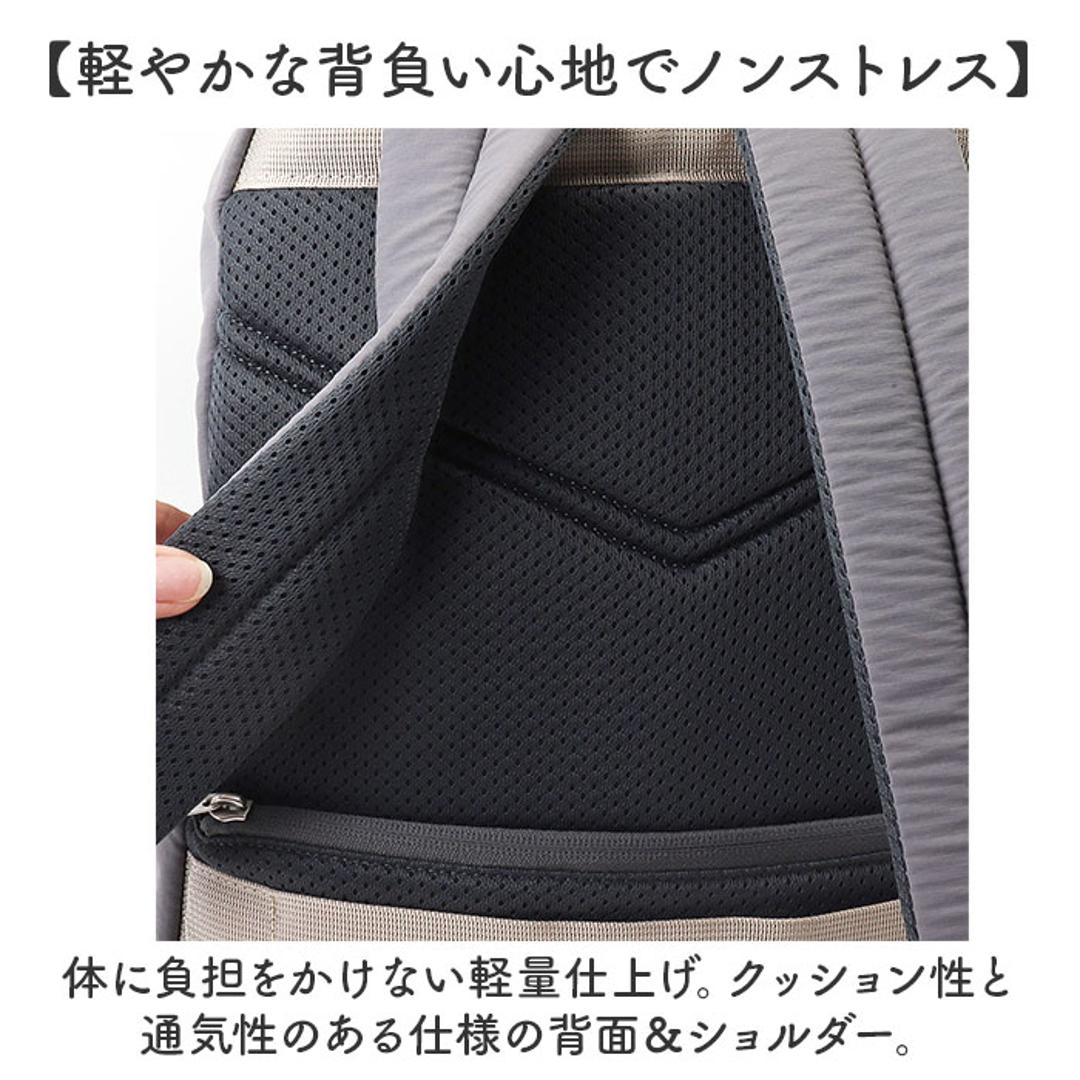 | 商品説明 | 【デイリーに使えてお出かけの味方】 ・軽くて優しい♪使い勝手抜群な、anelloGRANDE サブレ 10ポケットデイパック。 【可愛らしいサブレシリーズ】 ・さらっとふわっと軽いナイロン生地に、ナチュラルカラーで仕上げた合皮の引き手がおしゃれ☆ 【ガバっと開くダブルファスナー】 ・左右どちらからもオープン。中身を確認しやすく、出し入れスムーズ。 【A4もノートPCも持ち運びOK】 ・A4対応、15.4インチまでのPC対応ポケット付。通勤・通学にもおすすめの容量約21L。 【迷子知らず◎充実のポケット付き】 ・クッションポケット含め合計10ポケット!小物を定位置に納め、バッグの中で探す手間が不要。 【軽やかな背負い心地でノンストレス】 ・体に負担をかけない軽量仕上げ。クッション性と通気性のある仕様の背面&ショルダー。 【キャリーオンできて移動もラクラク】 ・背面の面ファスナーベルトを、キャリーのハンドルに通せるキャリーオンタイプ。 【リュックを掛けたり便利な持ち手】 ・持ち手を使って、フックなどに掛けておける!リュックを下ろすシーンでも便利。 (※1)持ち手はスナップボタンでまとめることが可能です。 【ちょっとの雨なら大丈夫】 ・汚れや水滴を弾きやすい、両面はっ水加工済み。お手入れも拭き取るだけ。 (※2)完全防水ではありません。 【持つ人を選ばないユニセックス仕様】 ・年代や性別問わず持ち歩ける、シンプルなデザイン。お気に入りのカラーをチョイス! 【ポケット仕様】 ・内側:クッションポケット×1、オープンポケット×2、ペンポケット×1、ボトルポケット×1 ・前面:マグネットポケット×1、ファスナーポケット×1 ・サイド:オープンポケット×2 ・背面:シークレットポケット×1 |