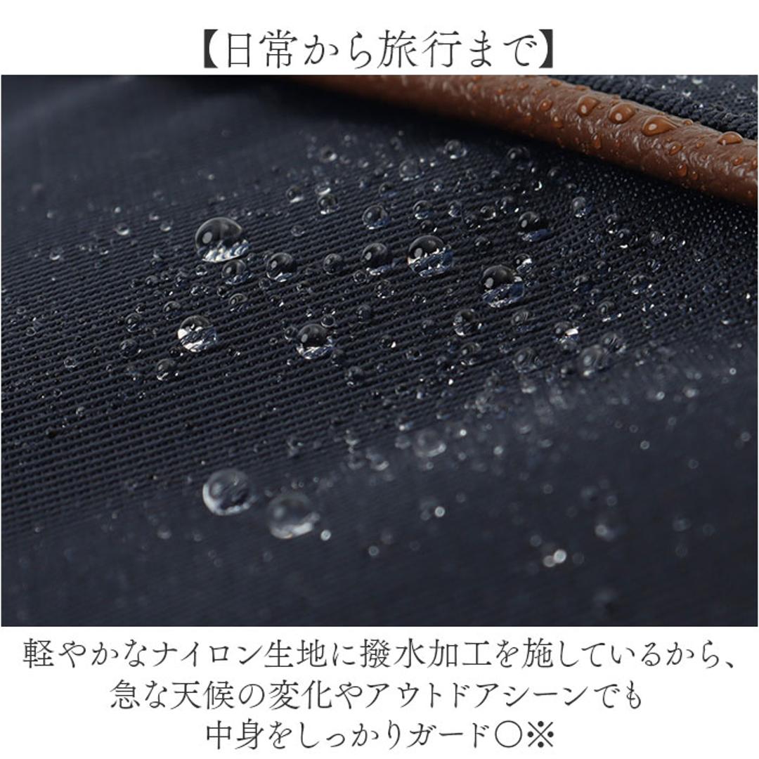 ・軽やかなナイロン生地に撥水加工を施しているから、急な天候の変化やアウトドアシーンでも中身をしっかりガード〇※完全防水ではありません。