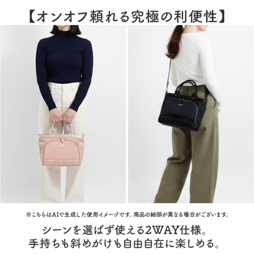 ・シーンを選ばず使える2WAY仕様。手持ちも斜めがけも自由自在に楽しめる。