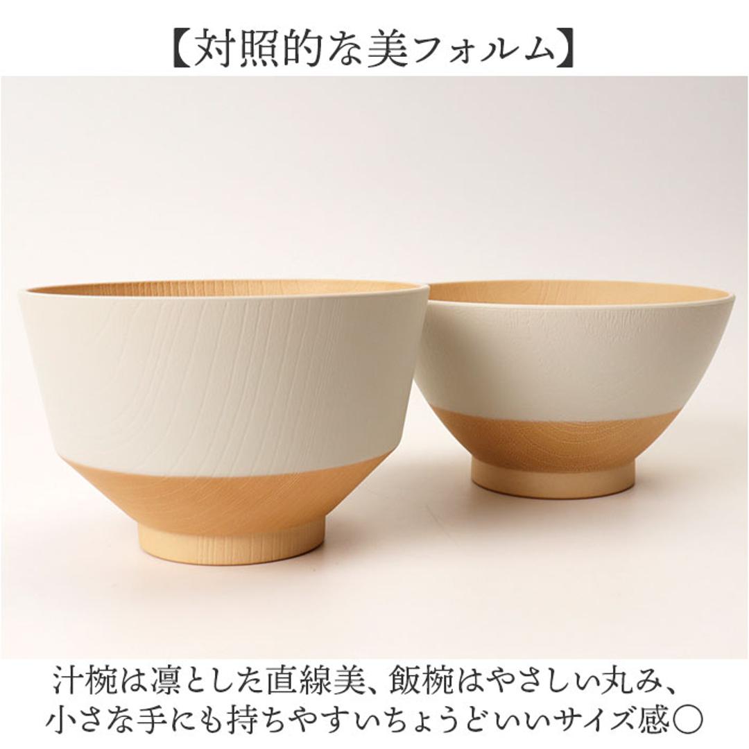 【対照的な美フォルム】汁椀は凛とした直線美、飯椀はやさしい丸み、小さな手にも持ちやすいちょうどいいサイズ感〇
