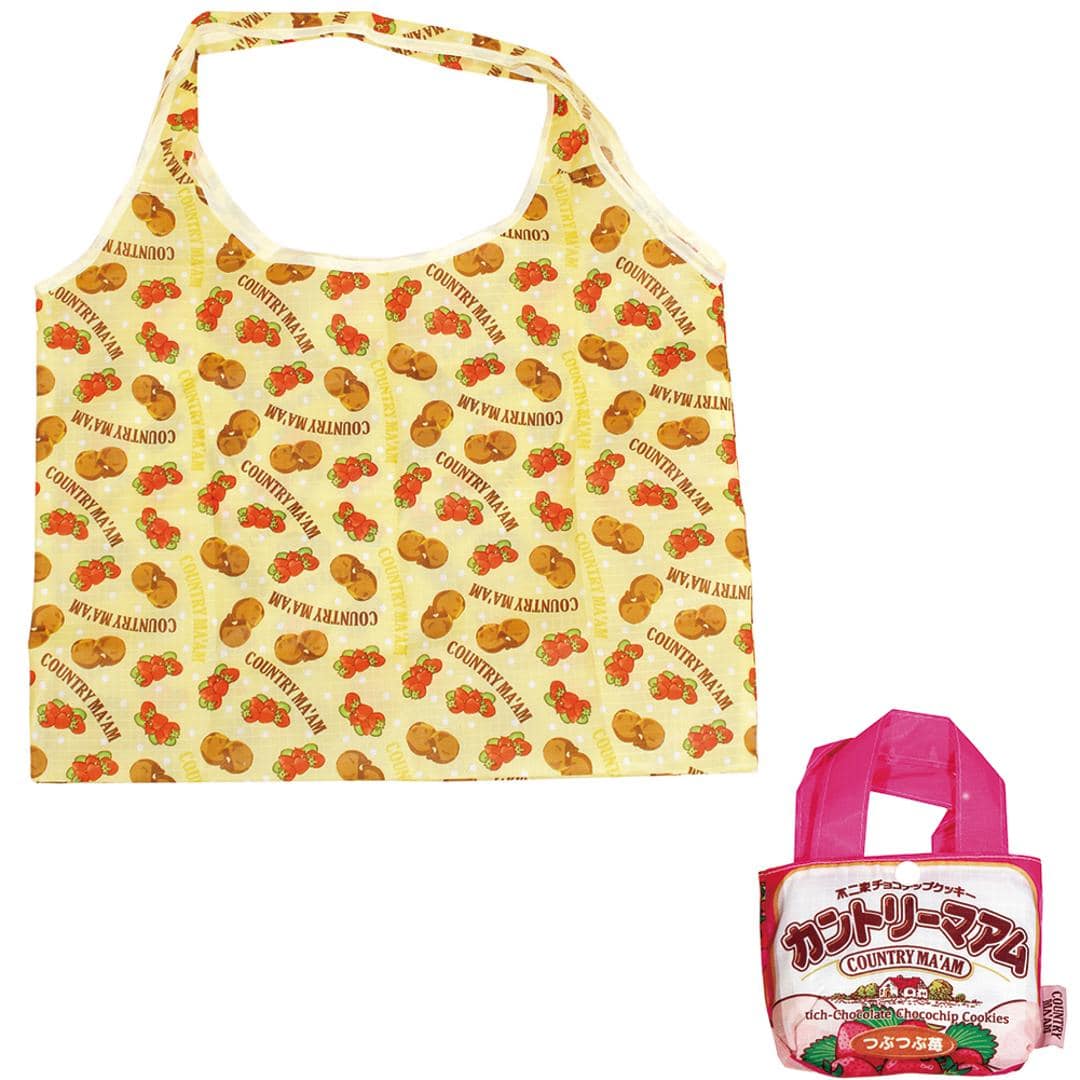 商品説明・持ち運びに便利なミニ収納バッグが付いた、お菓子パッケージ柄エコバッグ