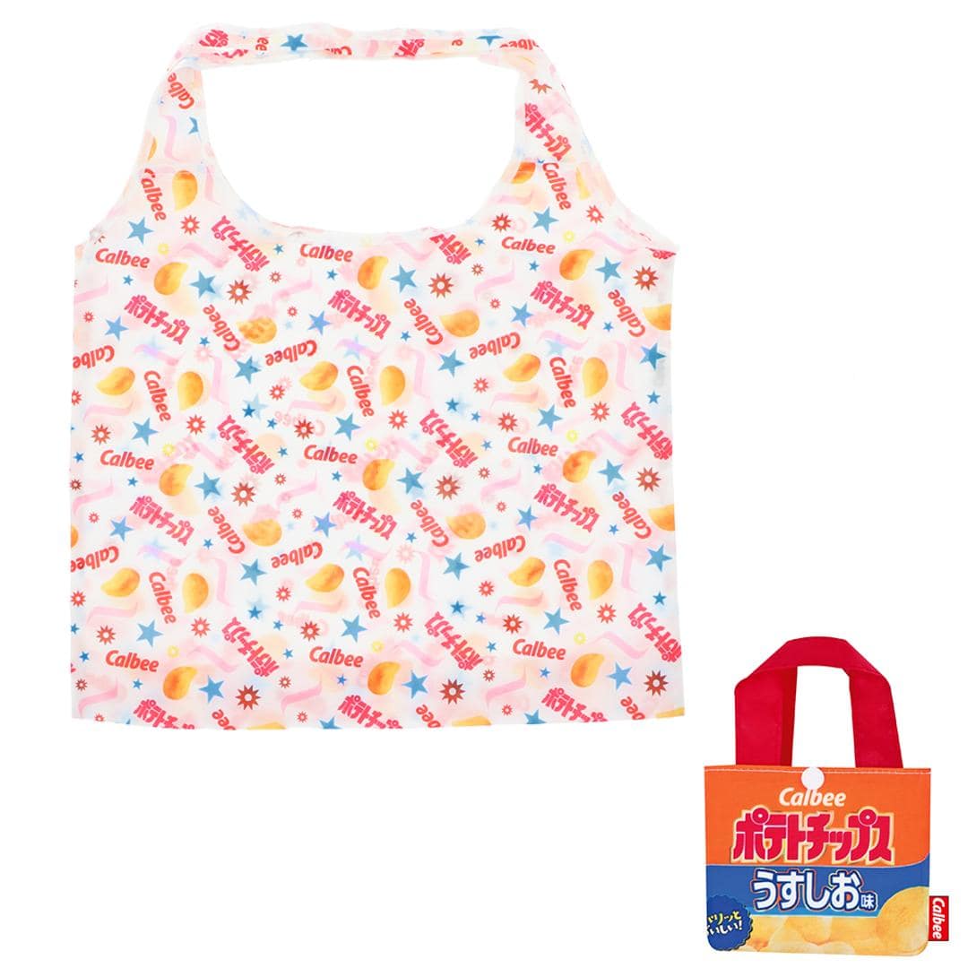 商品説明・持ち運びに便利なミニ収納バッグが付いた、お菓子パッケージ柄エコバッグ
