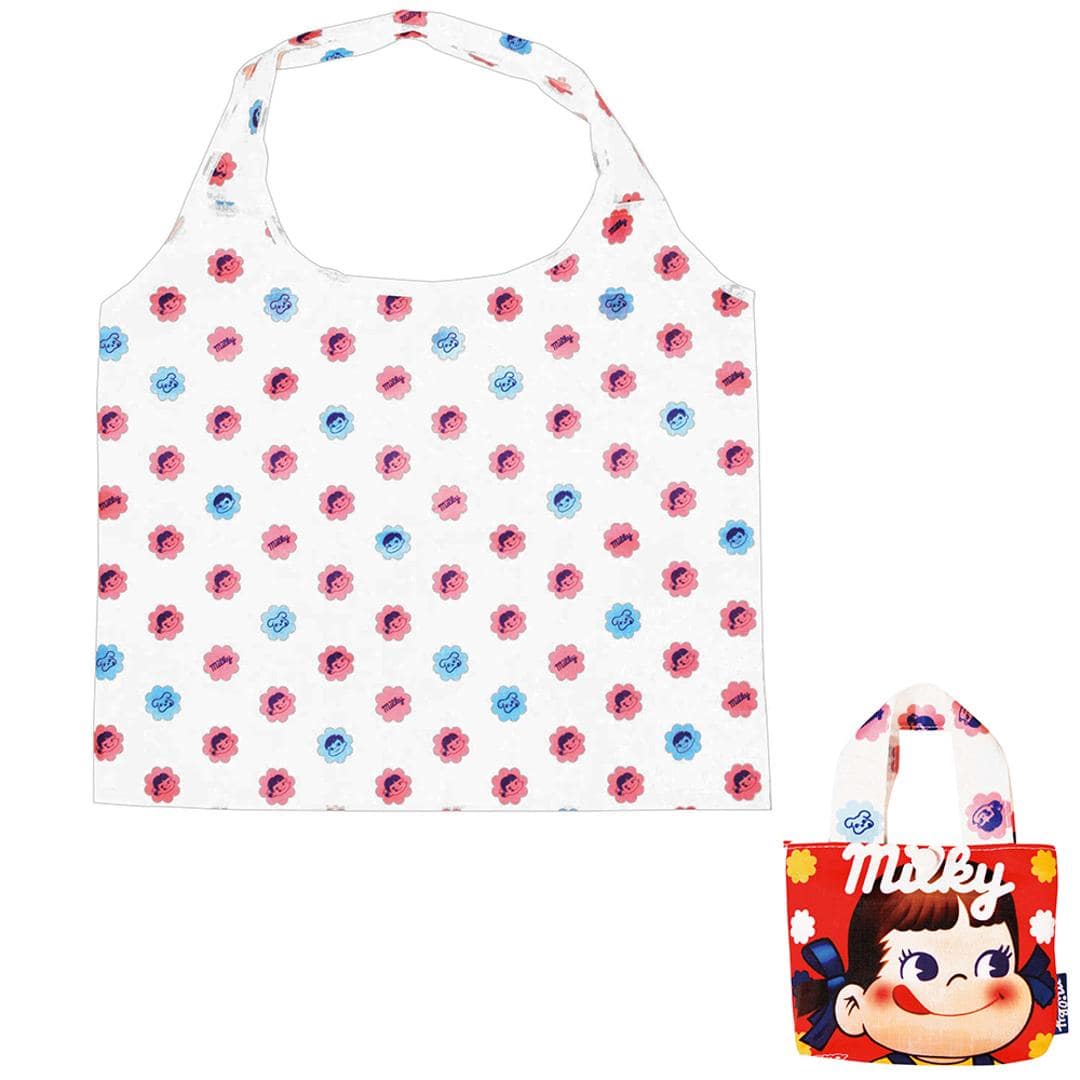 商品説明・持ち運びに便利なミニ収納バッグが付いた、お菓子パッケージ柄エコバッグ