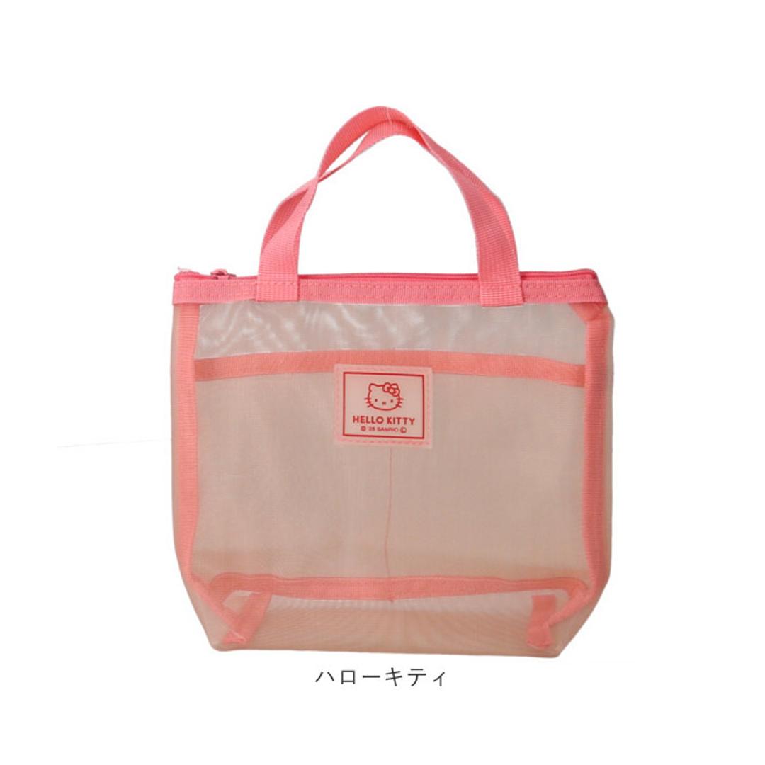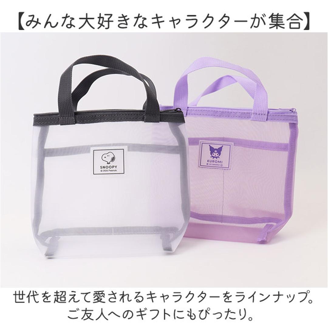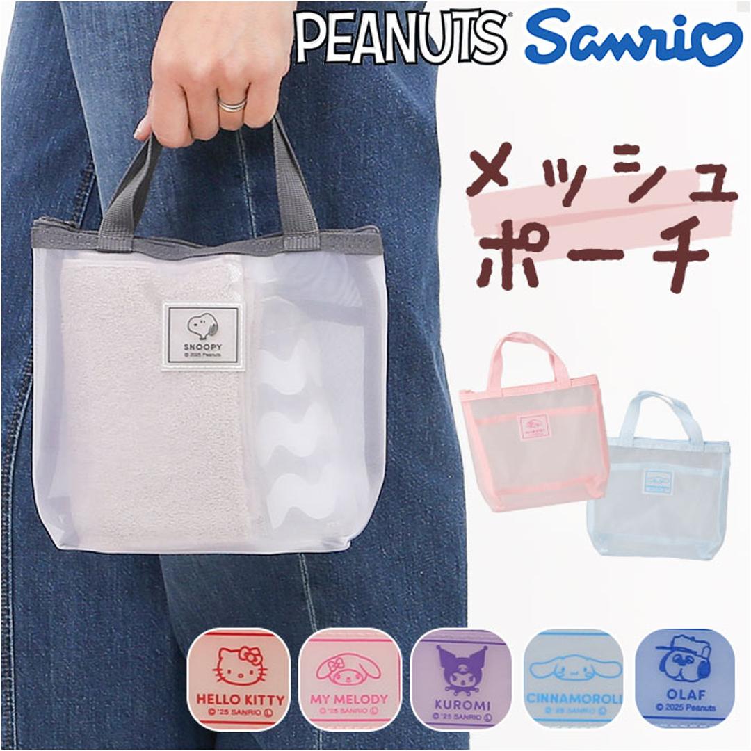・水濡れを気にせず使えて便利。キャラクターデザインの「持ち手付きメッシュポーチ」。