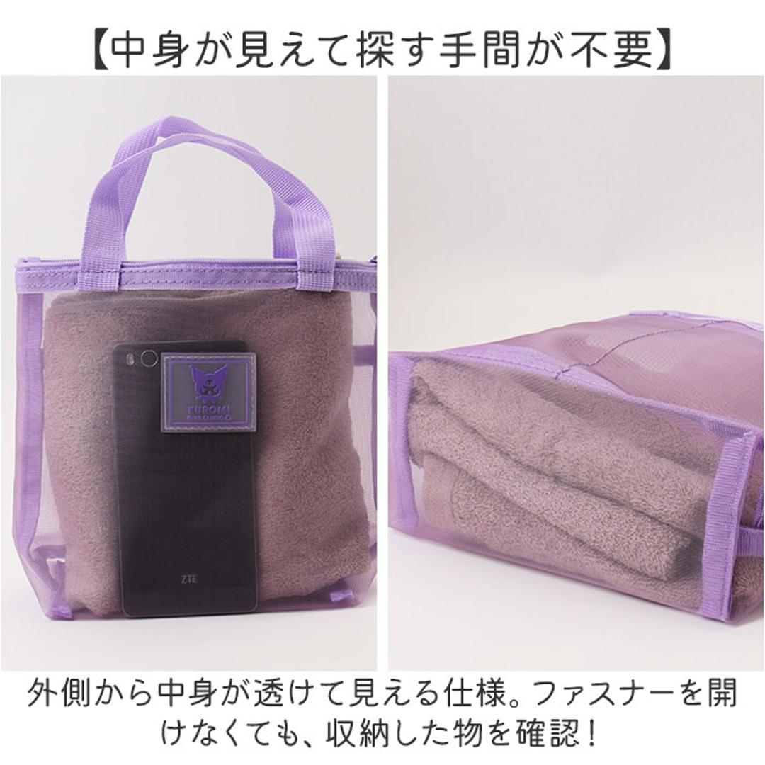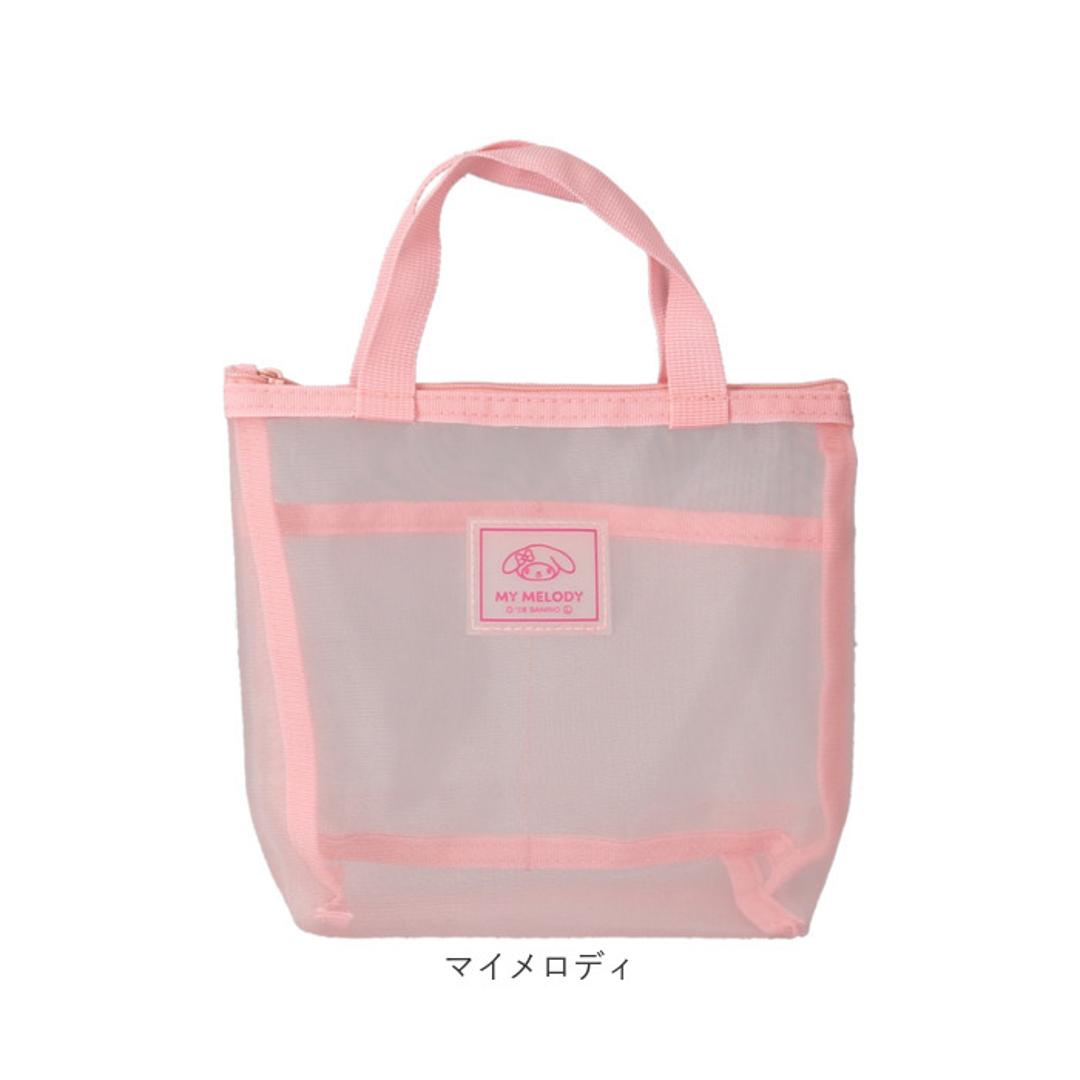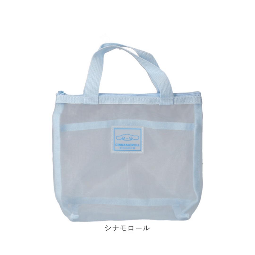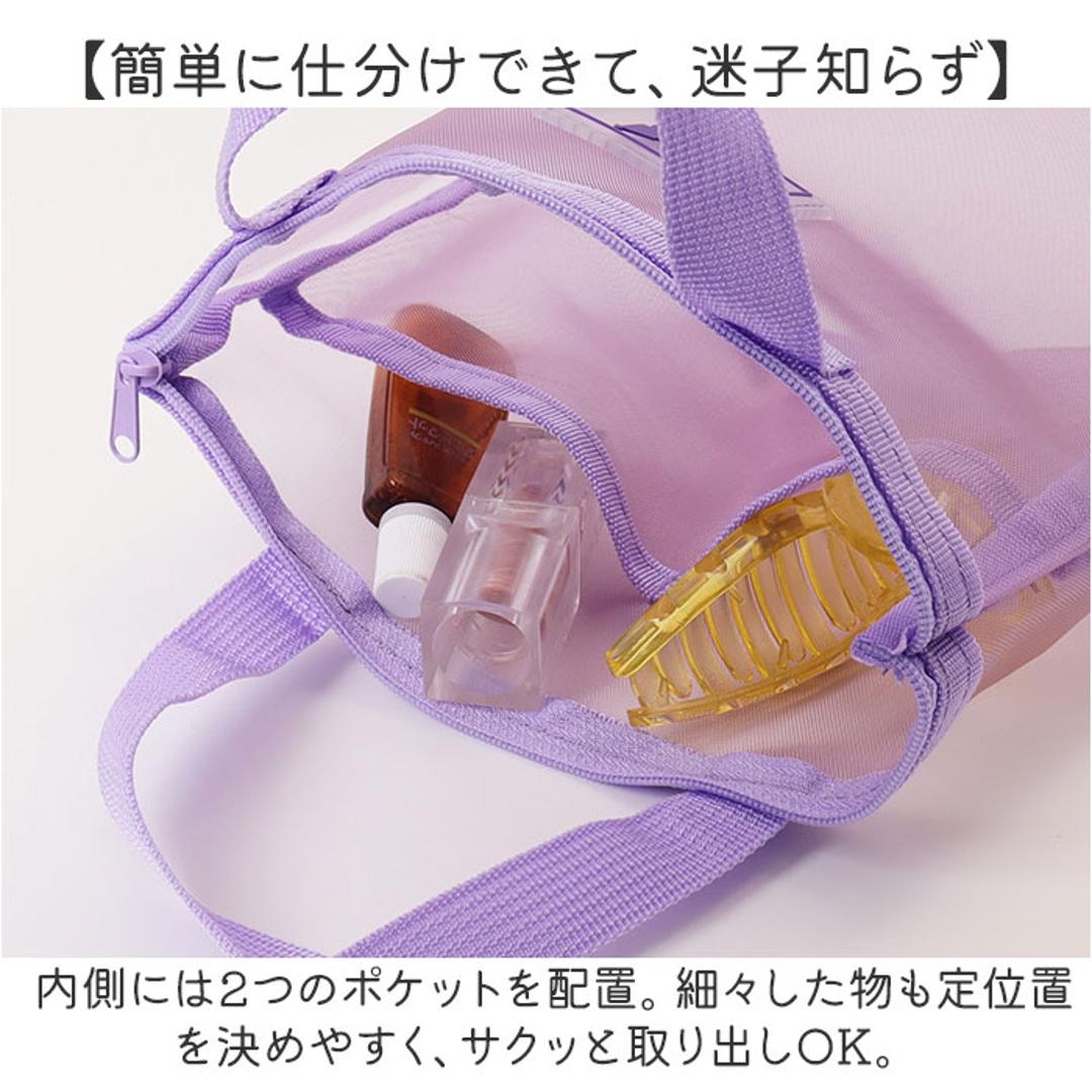 ・水濡れを気にせず使えて便利。キャラクターデザインの「持ち手付きメッシュポーチ」。