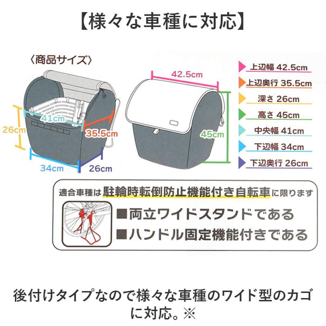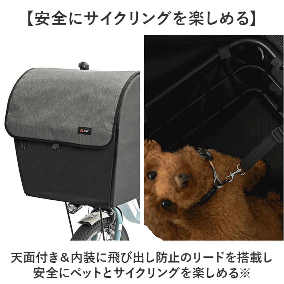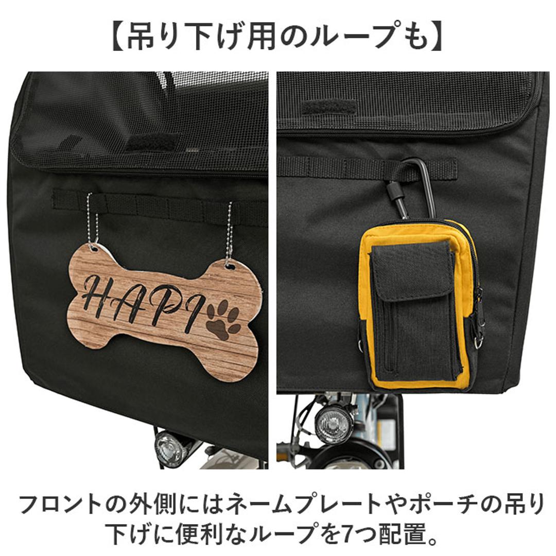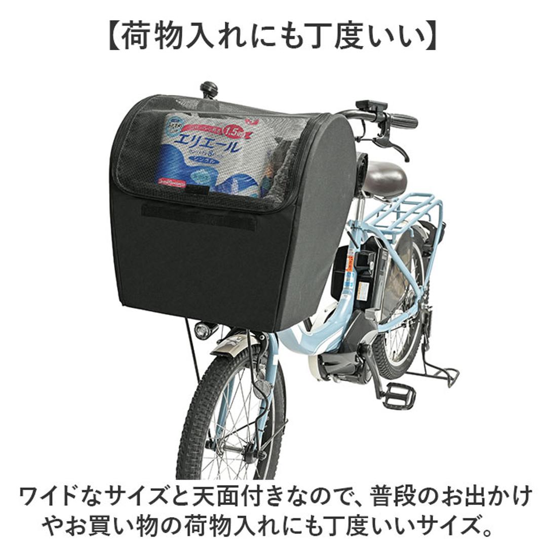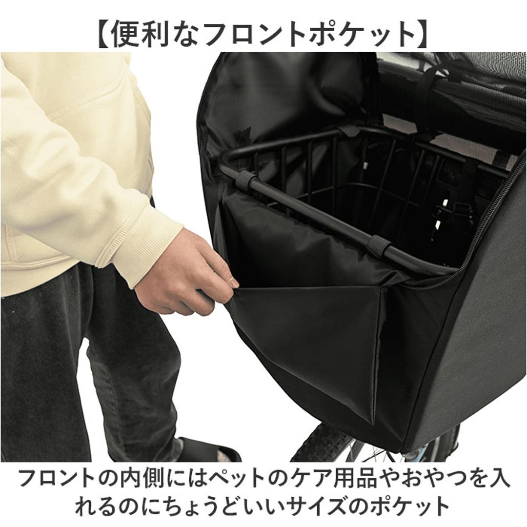 | 商品説明 | 【愛犬と一緒にサイクリング】 ・晴れの日はもちろん、雨の日もOK!ペットとサイクリングを楽しめるバスケットカバー。 ・※ 前カゴ専用カバー 【安全にサイクリングを楽しめる】 ・天面付き&内装に飛び出し防止のリードを搭載し安全にペットとサイクリングを楽しめる ・※乗車可能ペット:超小型犬~小型犬 【簡単設置】 ・カゴに被せて面ファスナーテープのベルトで留めるだけ♪工具不要で手軽に設置可能◎ 【通気性の良いメッシュ天面】 ・天面にはメッシュ素材を採用し、通気性が良く中から外の景色を楽しめるのもGOOD。 【雨のちょっとしたお出かけにも】 ・雨の日の通院など、ちょっとしたお出かけにも対応できる撥水加工済み。 ・※完全防水ではございません。 【ノーマルのフラップ付き】 ・ノーマルのフラップを設け雨で愛犬が濡れないようにできるのも嬉しいポイント。 【ペットが快適に過ごせるマット】 ・カゴの中に敷くマットは厚手のクッションマットで、長時間入っていても快適に過ごせる◎ 【便利なフロントポケット】 ・フロントの内側にはペットのケア用品やおやつを入れるのにちょうどいいサイズのポケット 【吊り下げ用のループも】 ・フロントの外側にはネームプレートやポーチの吊り下げに便利なループを7つ配置。 【様々な車種に対応】 ・後付けタイプなので様々な車種のワイド型のカゴに対応。 ・※対応カゴサイズ:横40.5cm×奥行き35cm×高さ26cmまで 【荷物入れにも丁度いい】 ・ワイドなサイズと天面付きなので、普段のお出かけやお買い物の荷物入れにも丁度いいサイズ。 |