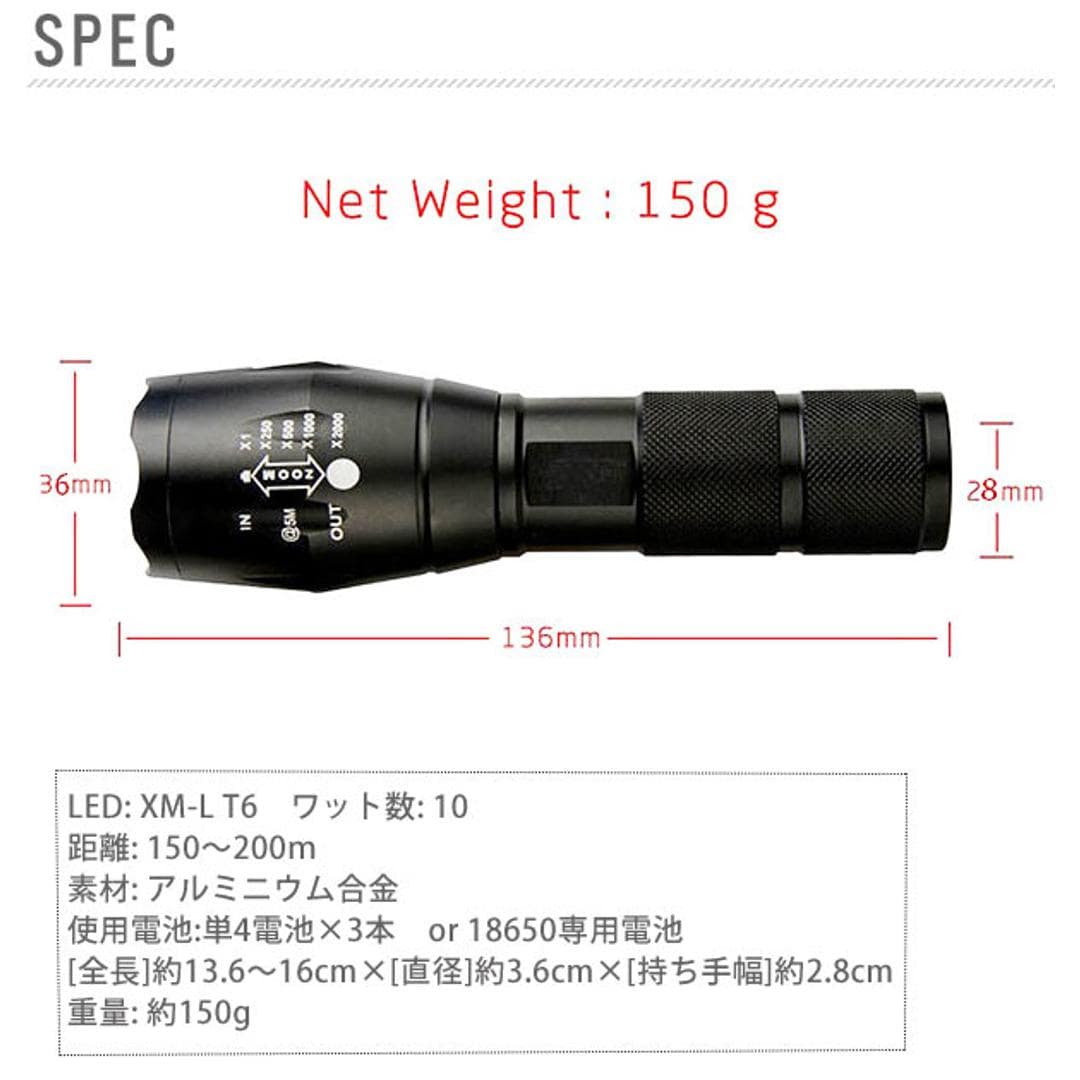 | 商品説明 | 防災、防犯、アウトドアに!LEDの懐中電灯です。ウォータープルーフ使用なので雨程度なら気にせず使用可能です。 5種類の点灯パターンを切り替える事が出来ます。(HIGH、MID、LOW、点滅、SOSパターン点滅) |