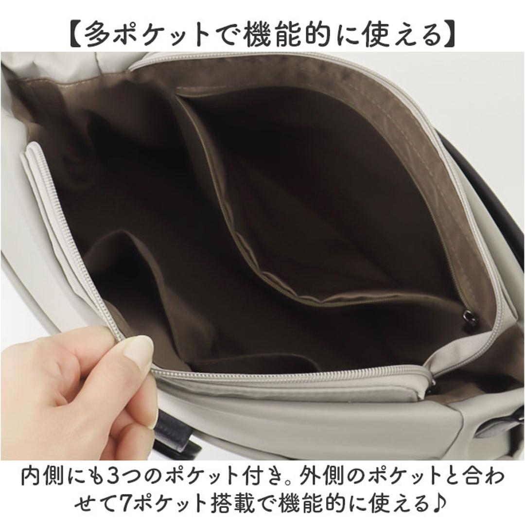| 商品説明 | 【様々なシーンで使える】 ・普段のお出かけや通勤通学にも使える万能バッグ☆ブラックスクエアショルダーバッグが発売♪ 【お出かけに便利なサイズ】 ・大きすぎないA4サイズの用紙がすっぽり収まるサイズ!お出かけのマストアイテムをIN♪ 【ポーチなどかさばる物もOK】 ・マチ幅を設け、ポーチや手帳など厚みがある小物もしっかり収納ができる。 【4つのアウトポケットで整頓】 ・小物が多くなっても安心♪外側に4つのアウトポケットですっきり整頓しながら収納可能。 【多ポケットで機能的に使える】 ・内側にも3つのポケット付き。外側のポケットと合わせて7ポケット搭載で機能的に使える♪ 【斜め掛け・肩掛けどちらもOK】 ・付属のショルダーベルトは長さ調節ができ、肩掛けや斜め掛けどちらもOK!持ち運びに便利。 【サッと持ち出せるハンドル付き】 ・サッと持ち出したいときや、手持ちにも対応☆取り外し可能なハンドル付き。 【ラフになりすぎないレザー調】 ・ハンドルなどポイントで合皮素材を使うことにより、ラフ過ぎない仕上がりに。 【アクセントにスクエアの留め具】 ・フロントポケットの留め具に大きなスクエアモチーフを使用しアクセントに。 【ちょっとの汚れや雨を弾く】 ・表地は撥水性があり、通り雨程度の水分やちょっとした汚れを弾くのでお手入れも楽チン☆※ 【デイリーで大活躍な軽量さ】 ・軽量で使い勝手抜群!デイリー使いにはもちろん、通勤バッグとしてもおすすめ。 【ポケット仕様】 ・メインルーム・・・ファスナーポケット×1、オープンポケット×2 ・フロント・・・オープンポケット×1(マグネットボタン付き) ・両サイド・・・オープンポケット×1ずつ ・背面・・・ファスナーポケット×1 【注意事項】 ・※完全防水ではございません |