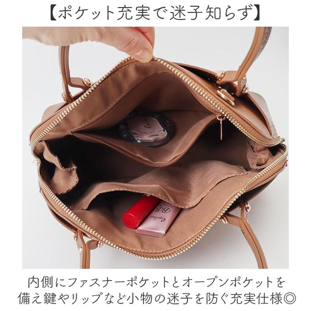 | 商品説明 | 【馬蹄モチーフの洗練2WAY】 ・手持ちもショルダーにもなる上品なラウンド型バッグ。 【手持ちもショルダーも自在】 ・手持ちはもちろん、ストラップをつければショルダーと使い分けられる頼れる2WAY♪ 【底鋲付きで自立する安心感】 ・底鋲付きだから地面に置いても底が汚れにくく型崩れも防いで長くきれいに使える〇 【馬蹄モチーフの洗練フォルム】 ・幸運を呼ぶ馬蹄型のエポメタルカラーが大人の装いにちょうどいい上品なアクセント。 【整理上手な三層構造】 ・中が3つの部屋に仕切られた三層構造で財布やスマホなど荷物の定位置がしっかり決まる収納力! 【ポケット充実で迷子知らず】 ・内側にファスナーポケットとオープンポケットを備え鍵やリップなど小物の迷子を防ぐ充実仕様◎ 【やわらかレザーの軽い持ち心地】 ・やわらかなフェイクレザー素材だから見た目以上に軽く毎日のお出かけにも負担なく持てる軽さ〇 【通勤にも休日にも映える上品さ】 ・シンプルなシルエットだから通勤にもセレモニーにも休日にもなじむデザイン♪ |