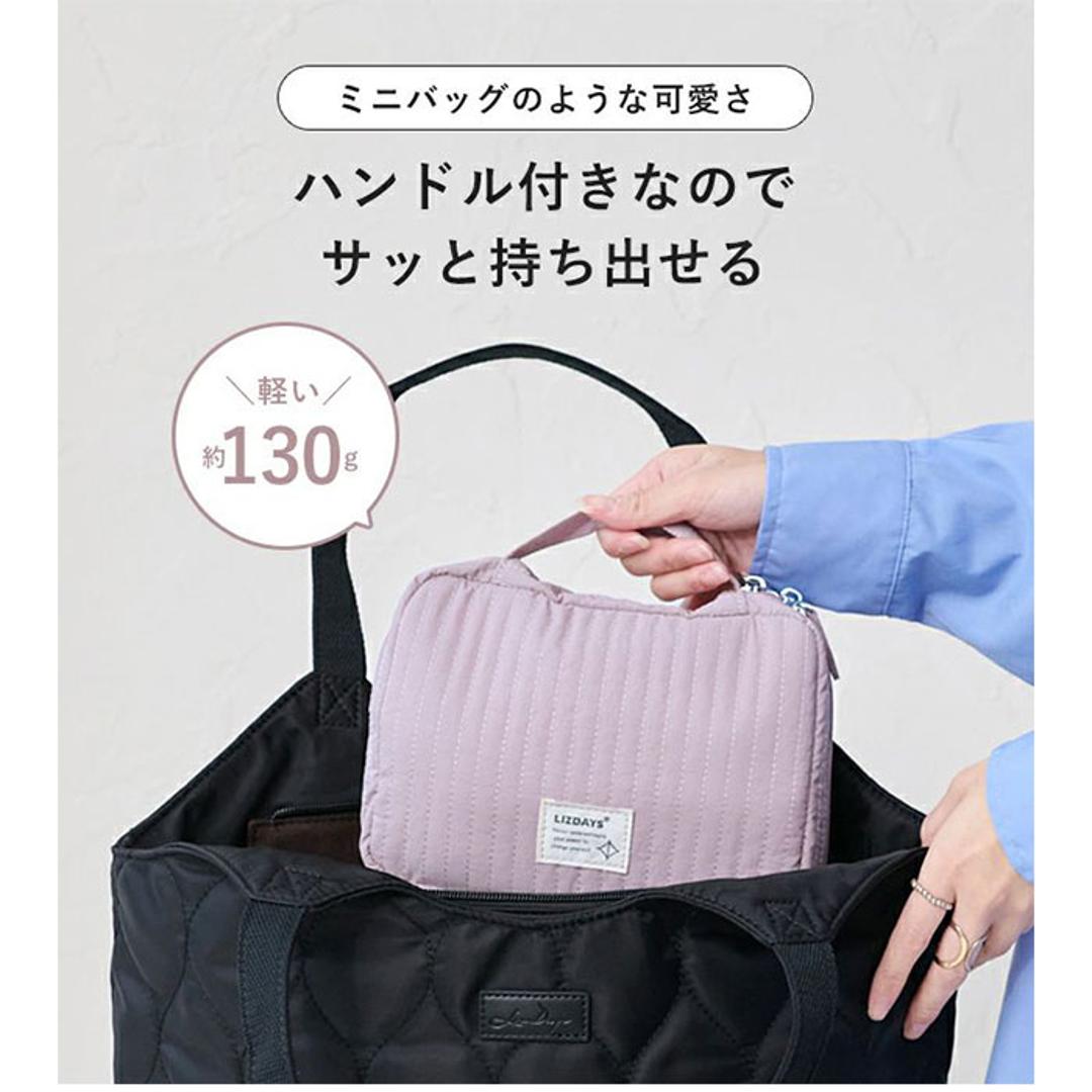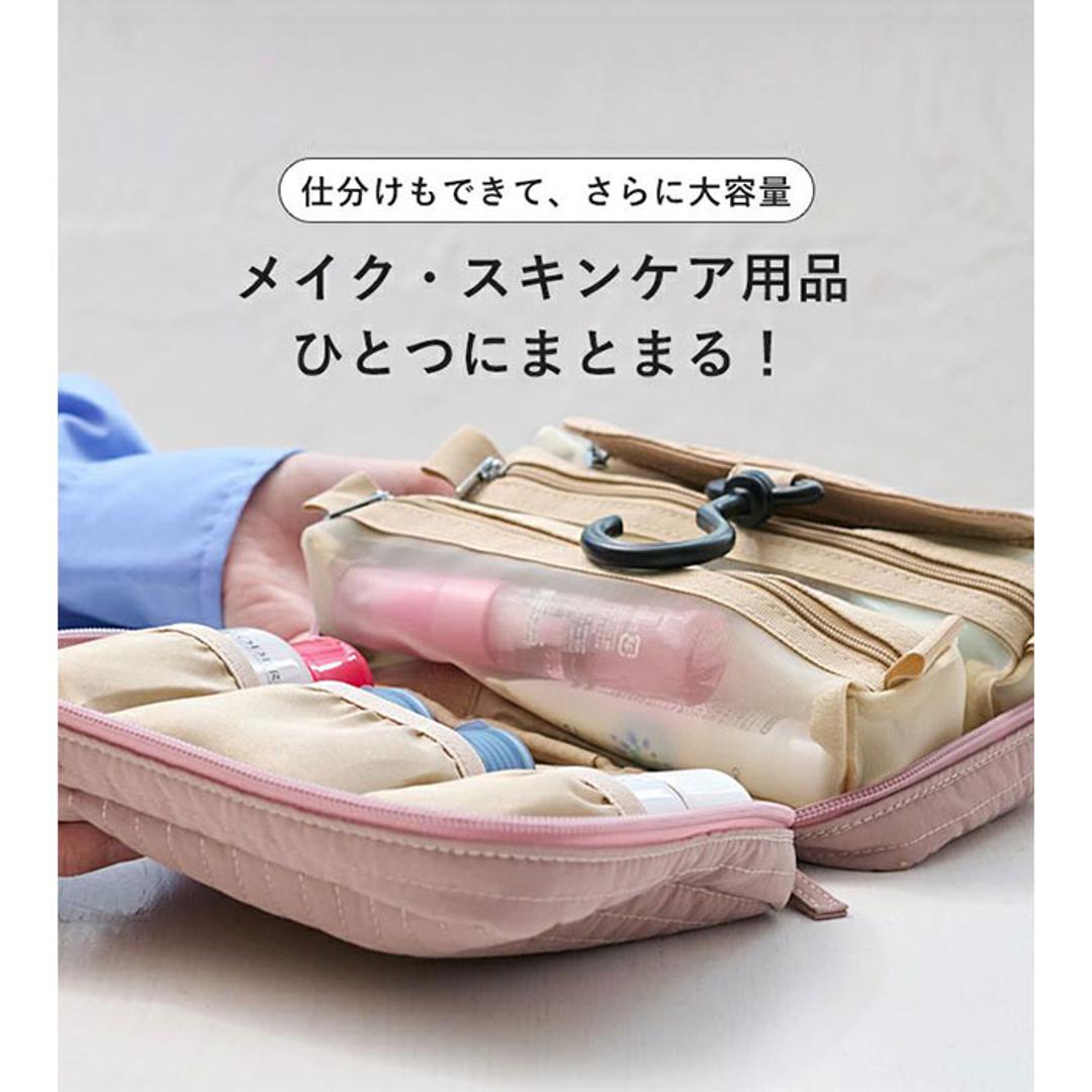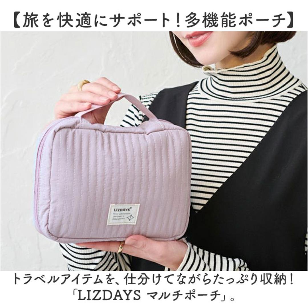 | 商品説明 | 【旅を快適にサポート!多機能ポーチ】 ・トラベルアイテムを、仕分けてながらたっぷり収納!「LIZDAYS マルチポーチ」。 【ポコポコ可愛いキルティング】 ・ふんわり感のあるキルティングデザイン。シンプルで大人女子にぴったりの仕上がり。 【水回りでも慌てない撥水性をプラス】 ・サラリとしたナイロン素材に、水滴や汚れを弾く撥水加工済み。ちょこっと水がはねても大丈夫。 (※)防水仕様ではありません。 【スペースの限られた洗面でも快適】 ・360度回転式S字フックを使ってホテルの洗面台などに吊り下げれば、便利な壁掛け収納に。 【自立させてテーブルでも使いやすく】 ・反転させて、面ファスナー同士をくっつけると自立。取り出しやすく、場所を選ばない♪ 【ガバっと開いて出し入れスムーズ】 ・左右どちらからも開くダブルファスナーで、180度オープン。使いたいアイテムが一目瞭然◎ 【コスメもスキンケア用品も一緒に】 ・多くのポケットを装備。コスメはもちろんスキンケアのボトル類、歯ブラシなどもひとまとめ。 【取り外し可能なメッシュポケット】 ・通気性に優れた2つのメッシュポーチは、面ファスナー着脱。仕分けしやすく単体使いも。 【程よくフィットするゴム口ポケット】 ・ボトルやミニスプレーなどをIN。大きさに合わせて伸縮し、こぼれ落ちにくくすっきり収納。 【迷子にならないファスナーポケット】 ・替えのコンタクトや絆創膏、常備薬など!細々した小物を入れておけて便利。 【手持ちできる軽やかなバッグ型】 ・軽量で外側上部に持ち手付き。手に取りやすく、旅先の大浴場や温泉などへの移動もラクラク。 【お気に入りを選べるカラー】 ・ベーシックや柔らかなカラーに、ロゴタグをON。使う人を選ばない仕上がりで贈り物にも。 【ポケット仕様】 ・内側:メッシュポケット×2(取り外し可能)、ゴム口ポケット×3、ファスナーポケット×1 |
